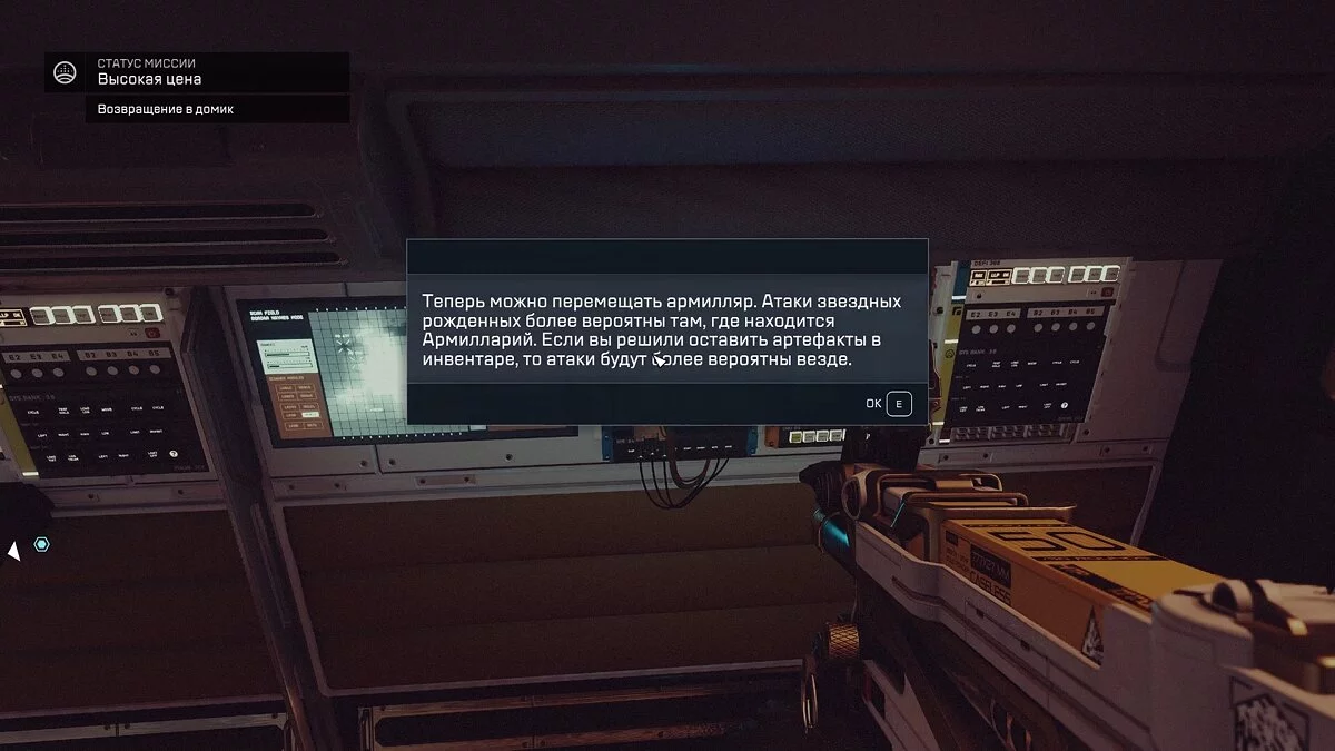 Когда все артефакты будут у вас, коснитесь последнего и вернитесь на корабль. У вас будет выбор — разместить армилляр на корабле или извлечь его и продолжить путешествие.