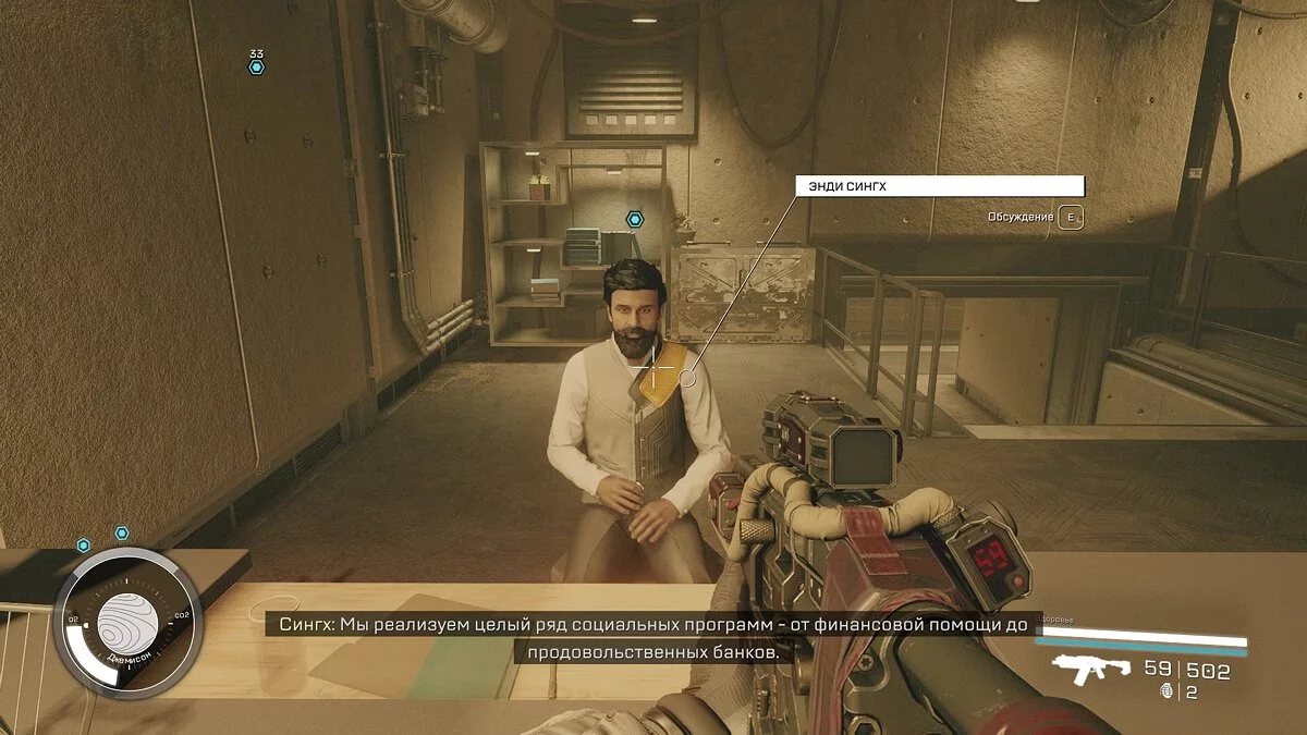 Выйдите в открытый космос и отследите спутник «Глаз». Направьте на него курсор, затем зажмите «R», чтобы выполнить быстрое перемещение. Состыкуйтесь с ним, затем побеседуйте с Владимиром. Квест обновится. Теперь станет доступно несколько подзадач.