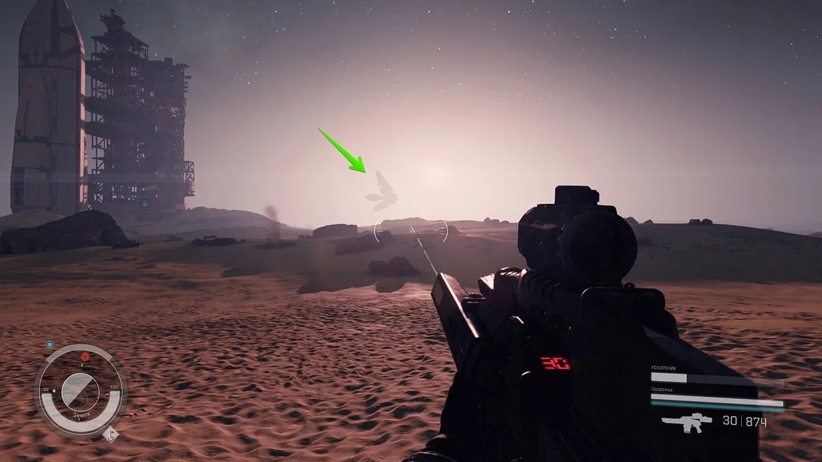 Высадившись, бегите в противоположную. сторону от корабля (можете включить сканер).