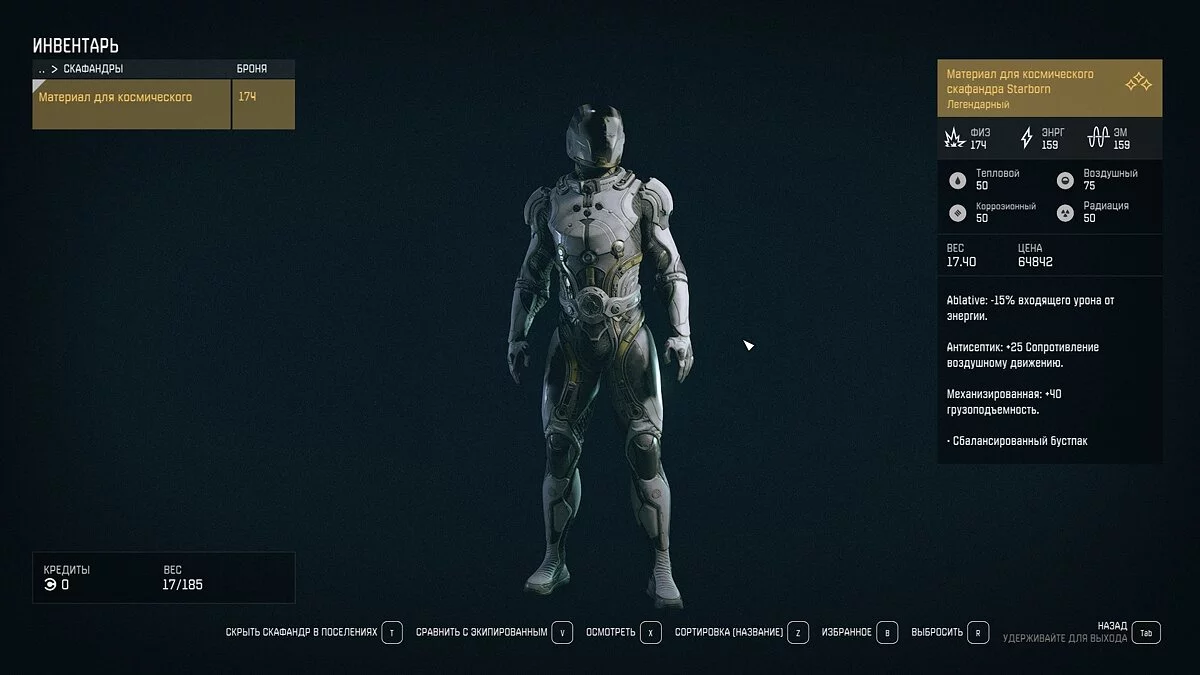- Космический скафандр Starborn Gravitas (61 265 кредитов).
