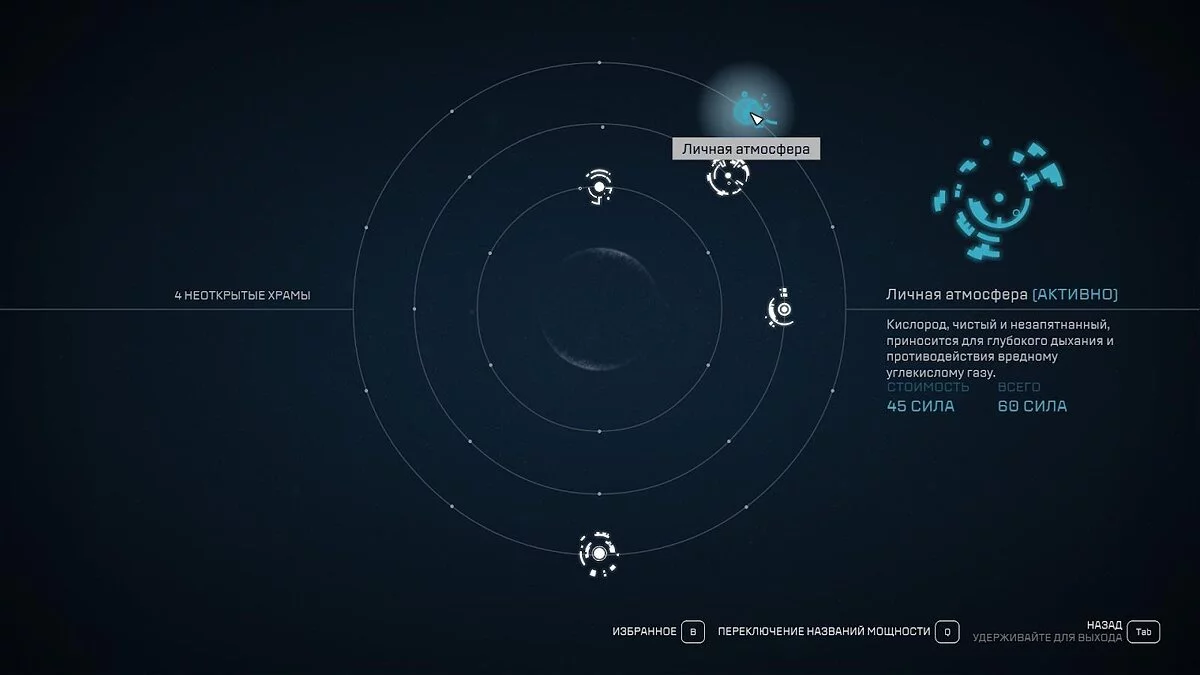 Двигаясь по основному сюжету вы узнаете, что на некоторых планетах расположены храмы, в которых вы можете открыть новые способности. Одна из таких — «Личная атмосфера», расположенная в системе Шайенн (Cheyenne). Данная способность пополняет запасы кислорода и полностью избавляет от углекислого газа. Бонусом вы временно получите бесконечную выносливость, что поможет быстрее исследовать новые локации. Подробнее о нахождении всех храмов мы описали в отдельном гайде.