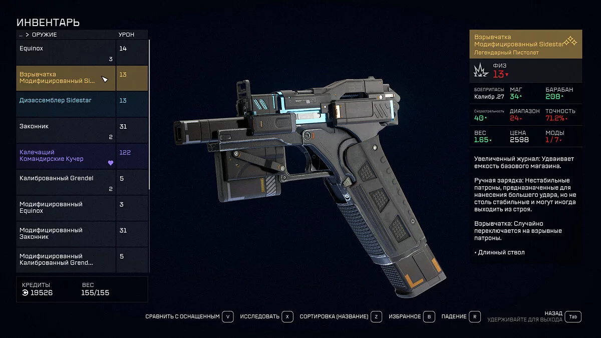 Для начала поговорим о том, из чего «состоит» оружие в Starfield. Тип оружия и урона у каждой пушки изначально неизменны. А вот модификаторы, префиксы и скрытый уровень генерируются случайно.