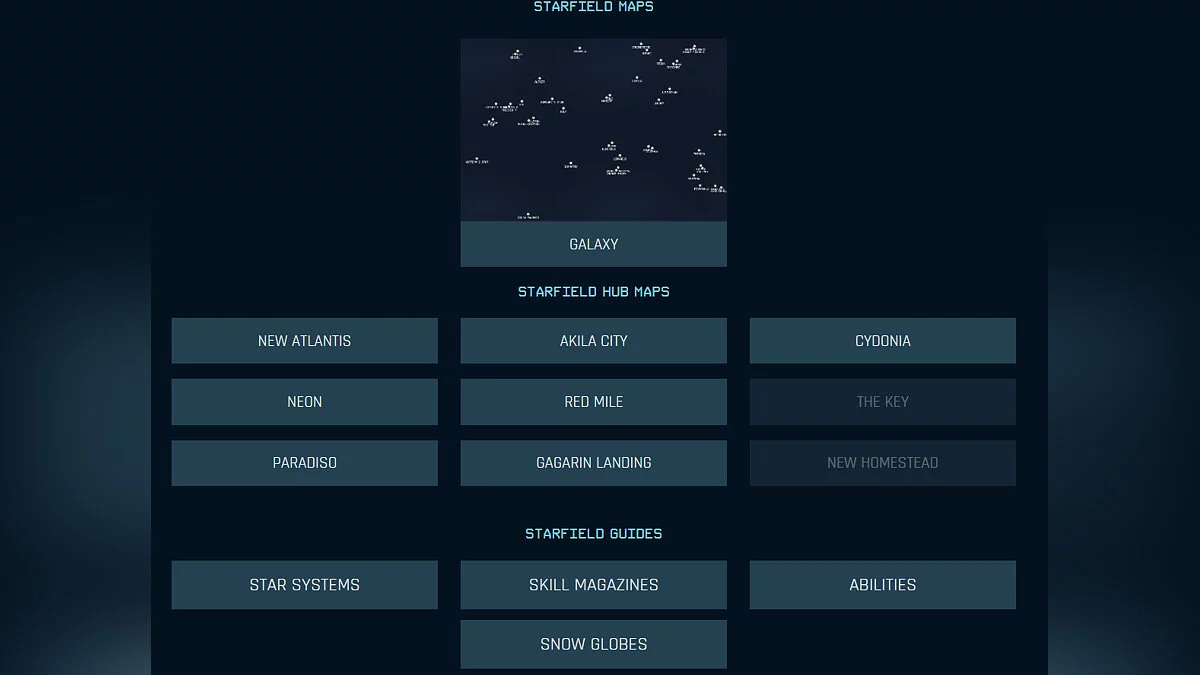 В Starfield мы можем посетить больше тысячи планет в 100 звездных системах, поэтому интерактивная карта для этой игры несколько отличается от привычных. Условно её можно поделить на карту галактики и карты главных локаций.