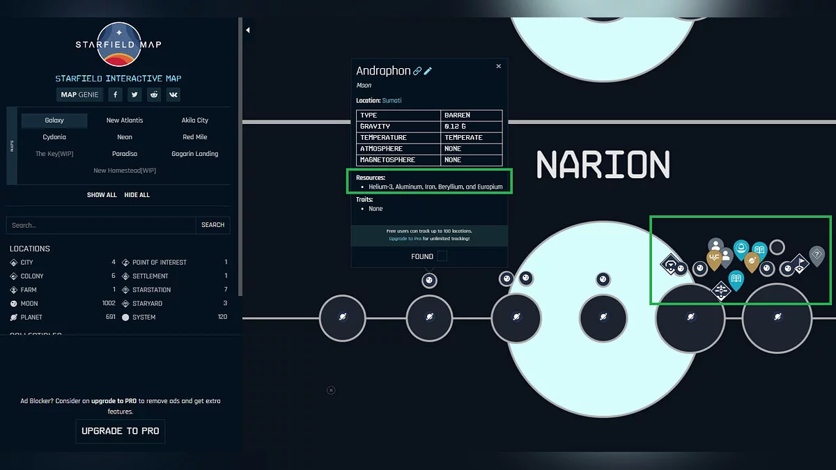 Для того чтобы воспользоваться интерактивной картой, перейдите на сайт MapGenie. Вам будет доступна схема галактики, а также карты крупных поселений. Кроме того, на сайте есть руководства по поиску журналов и особых способностей, но далеко не все местоположения журналов доступны на данный момент.