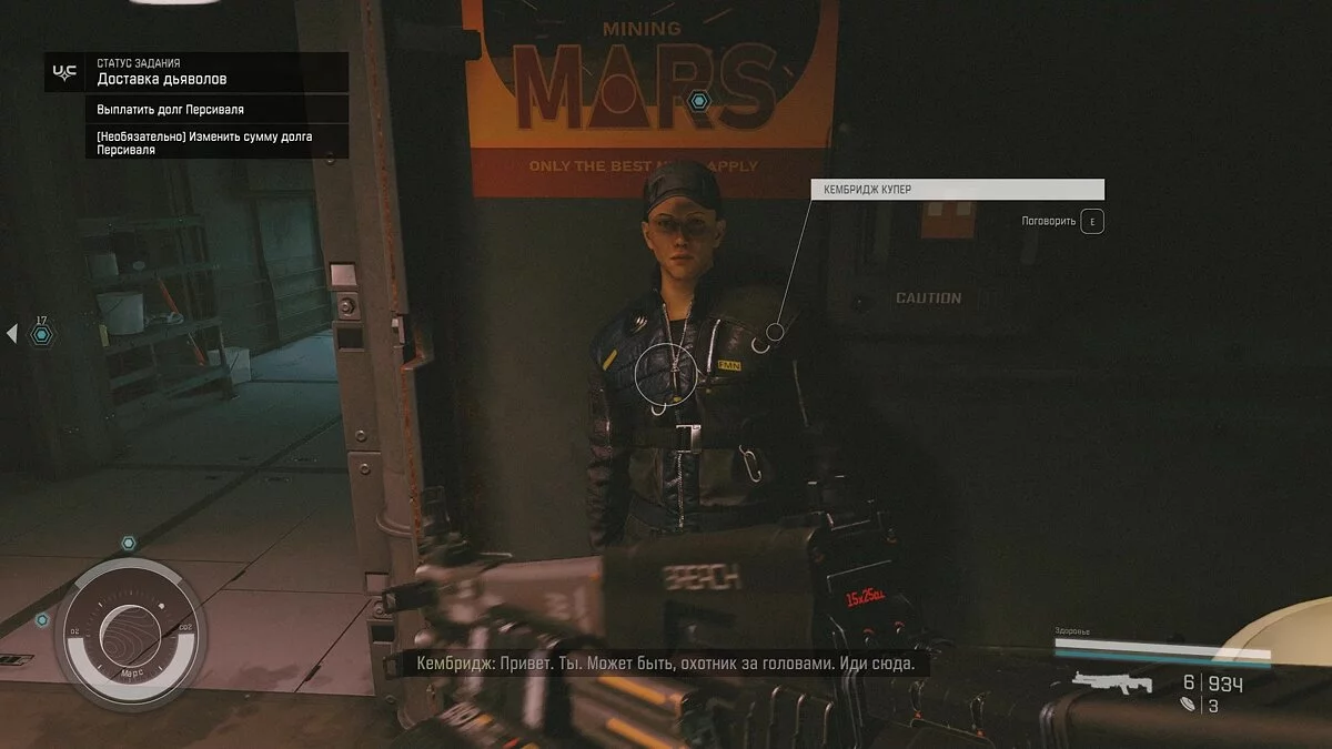 Теперь нужно посетить планету Марс и попасть в Торговое управление, где вас будет ждать Октай Энбаяр. Спуститесь на лифте на уровень P2 и войдите в бар. После беседы с барменом можете пообщаться с парнем у стены — так вы получите дополнительную активность.