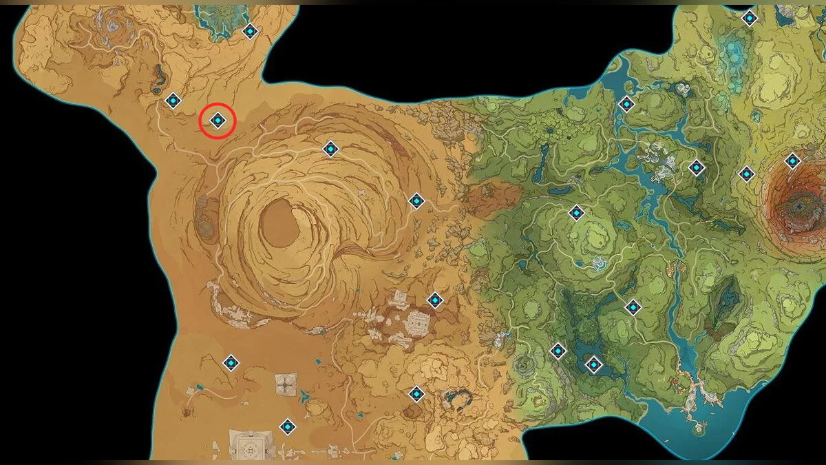 Первозданный цветок оазиса — материал, который можно получить выбить с босса, известного как Страж оазиса Апепа 70-го уровня и выше. На карте мы обозначили локацию, где он обитает.