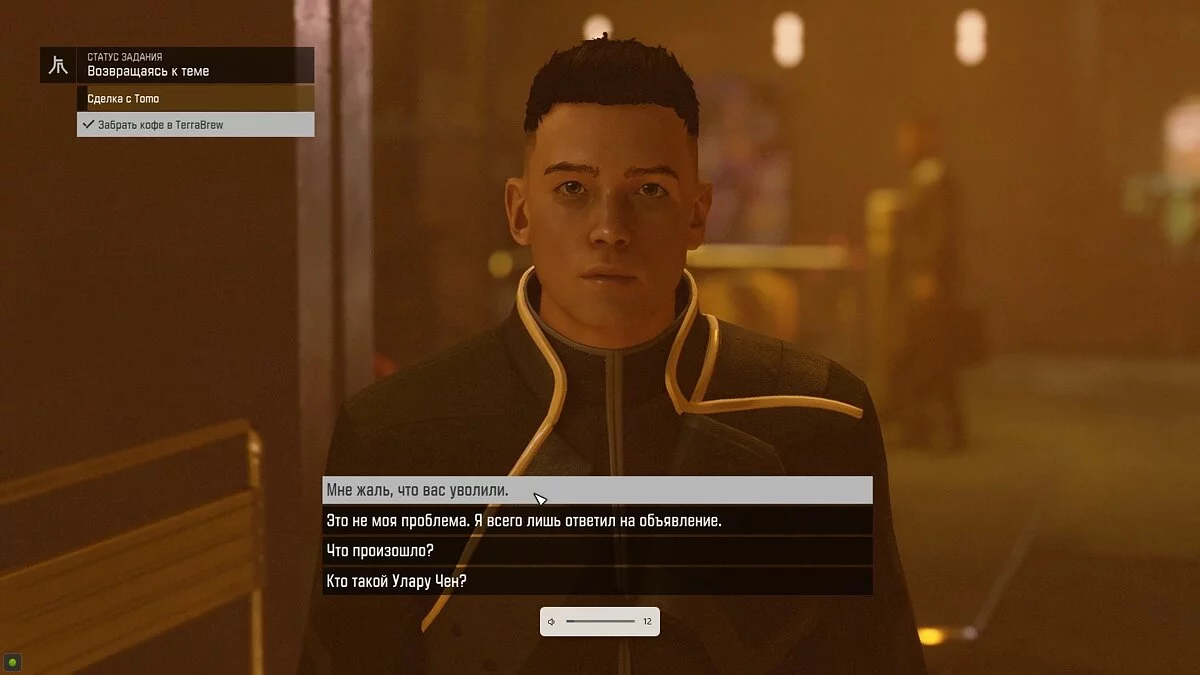 Девушка попросит о простой услуге — забрать кофе из кофейни в городе. Там же вы столкнётесь с предыдущим сотрудником, который ранее занимал вашу должность. Парень попытается напасть на вас. Можете уговорить его опустить оружие или пристрелить — не имеет значения.