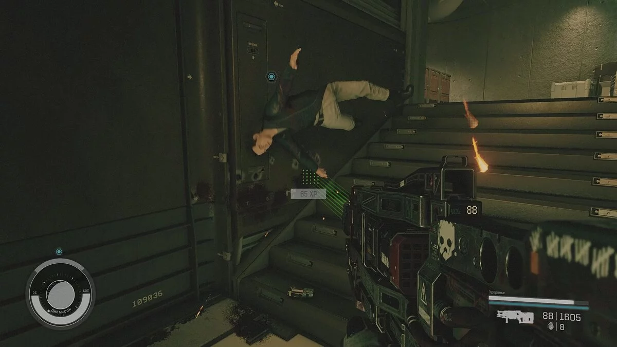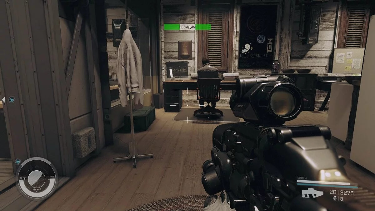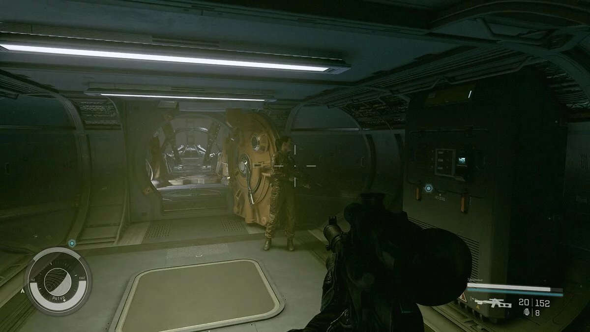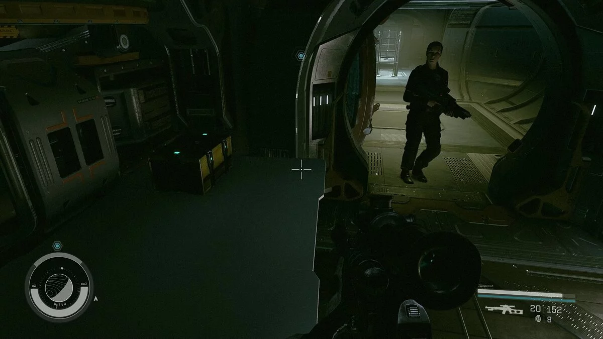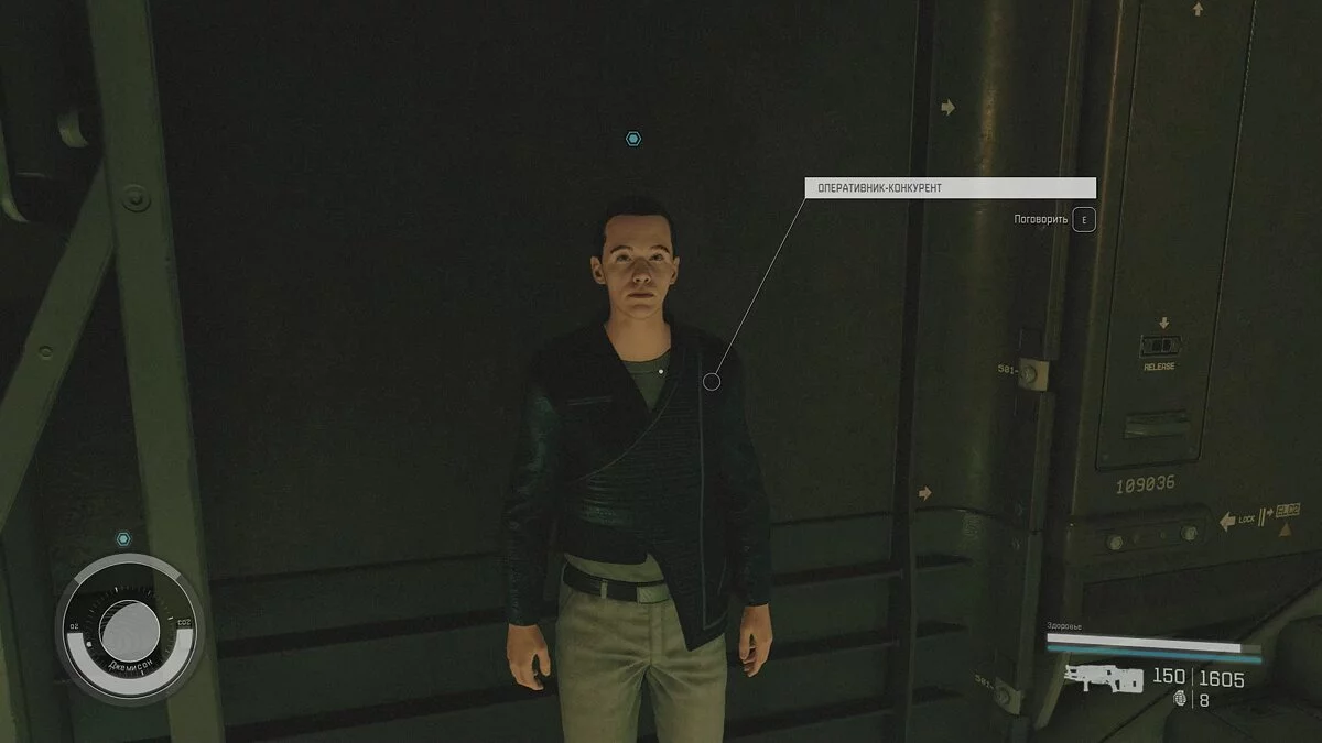 Задание несложное: доберитесь до космического корабля в ангаре и поднимитесь на верхний уровень. Здесь будет единственный охранник, который курсирует между отсеками. Если он увидит вас, то остановится и будет долго смотреть. Чтобы он отошёл, достаточно войти в кабину пилота и задержаться там на несколько секунд. Когда охранник войдёт внутрь, закройте дверь и подключите передатчик на выделенное маркером место.