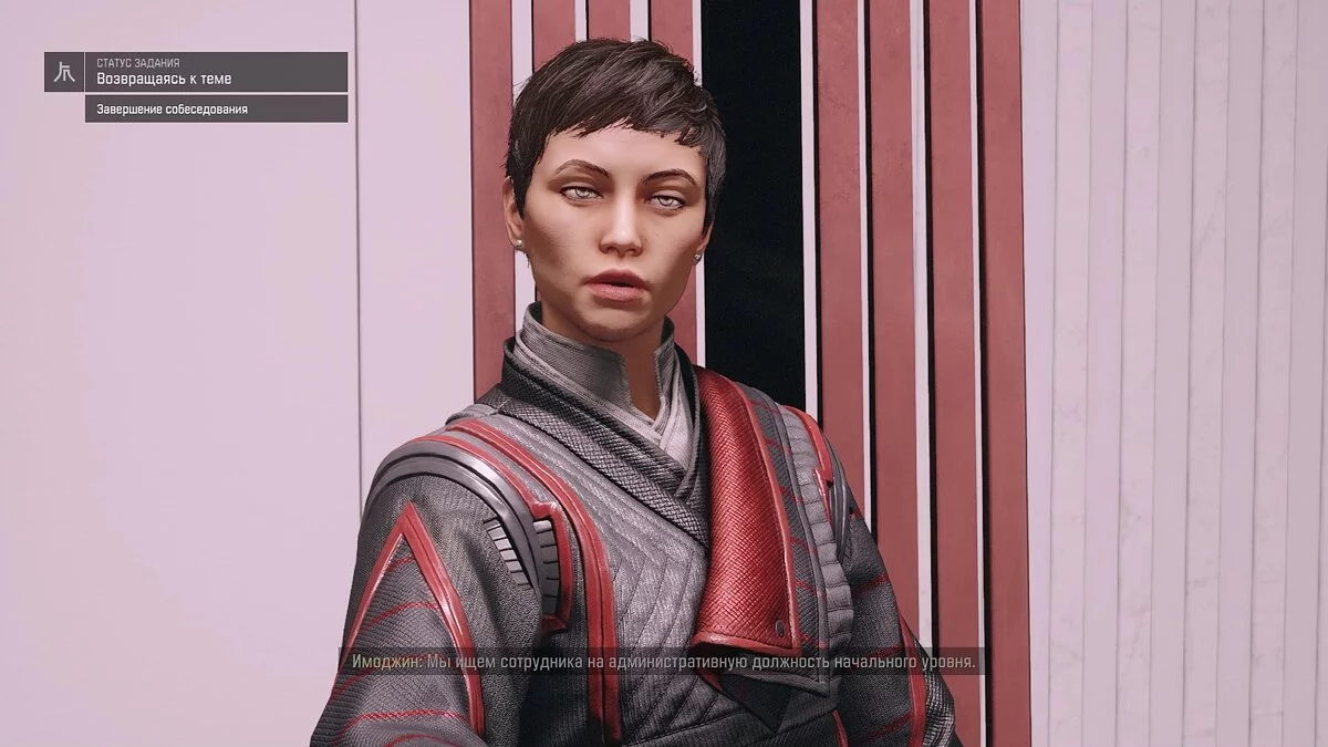 В конце предыдущего квеста вы узнаете, что на терминале Улару скрывалась информация о предательнице Имоджин. Направляйтесь в её кабинет, где сможете поговорить с одним из сотрудников. Вы получите примерное местонахождение Имоджин, однако появится необязательное задание «Поговорить с Далтоном» — можете пропустить его.