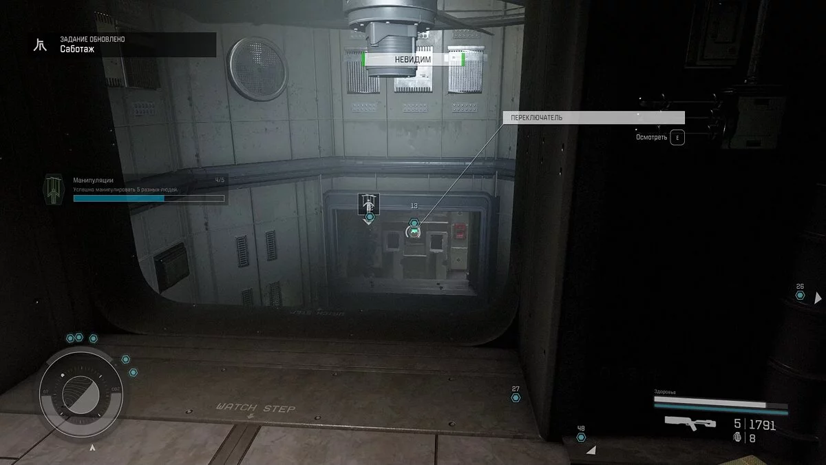 По такому же принципу отвлекайте других защитников здания. Однако следует помнить, что если вы не выберите предмет для взаимодействия для того или иного персонажа, то он последует за вами. Вскоре эффект от манипуляции пройдёт, а охранник откроет огонь и поднимет тревогу. Старайтесь избегать подобных ситуаций!