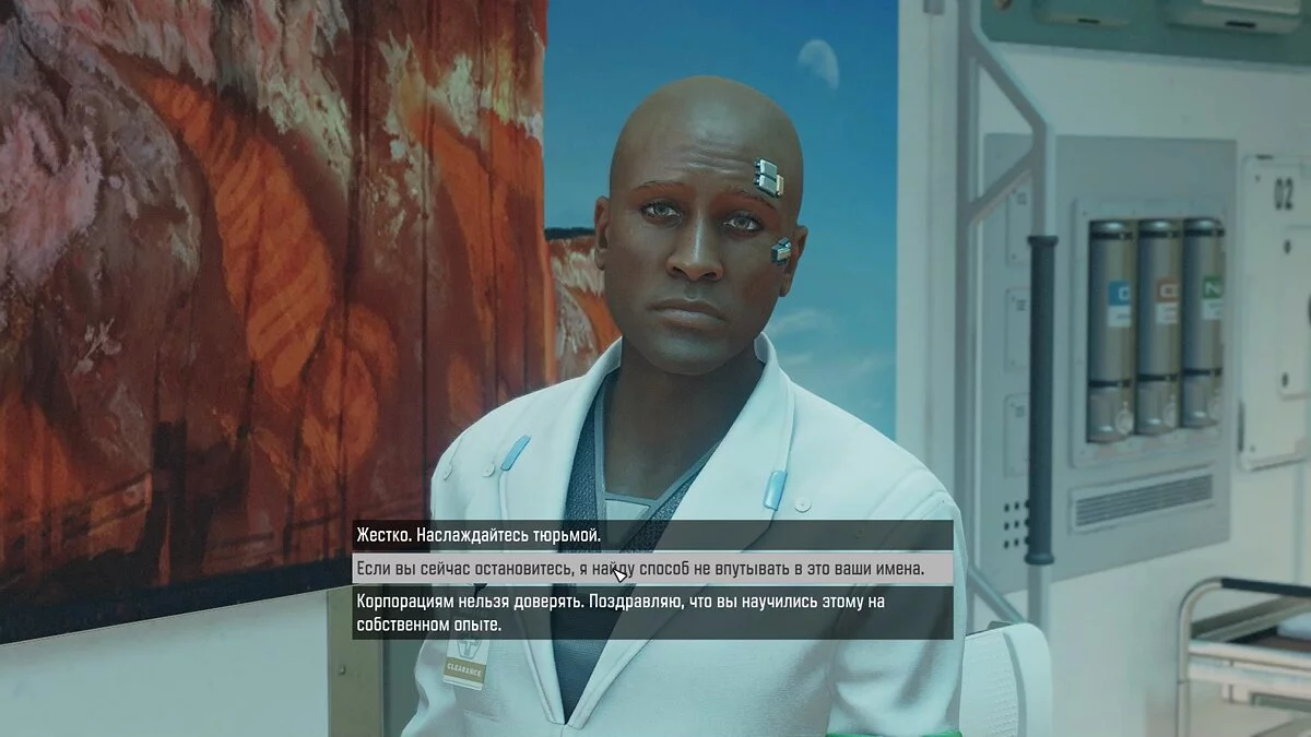 Ознакомьтесь с записями, после чего навестите докторов в клинике в системе Нарион. Вы тоже могли бывать здесь при выполнении заданий «Коллектива Фристар». Однако на этот раз нужно осмотреть другой отдел клиники. Чтобы без проблем пройти, используйте убеждение или навык «Медицина».