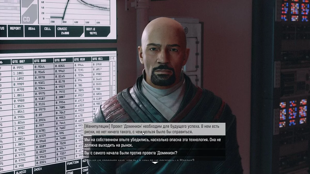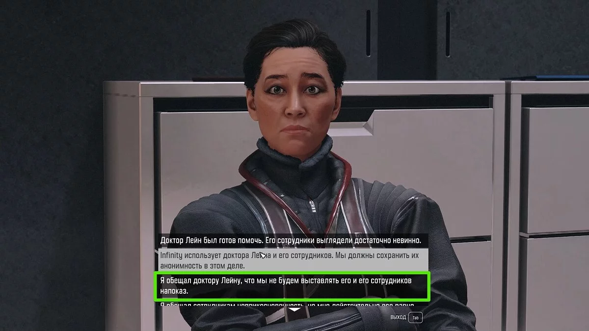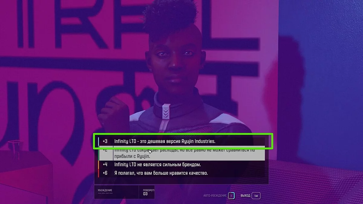 Во время диалогов при помощи манипуляций вы можете изменить мнение членов совета. В какую сторону — решать только вам. Мы выбрали путь Масако и убедили почти всех выступить за слияние с Infinity LTD и продолжение исследований.