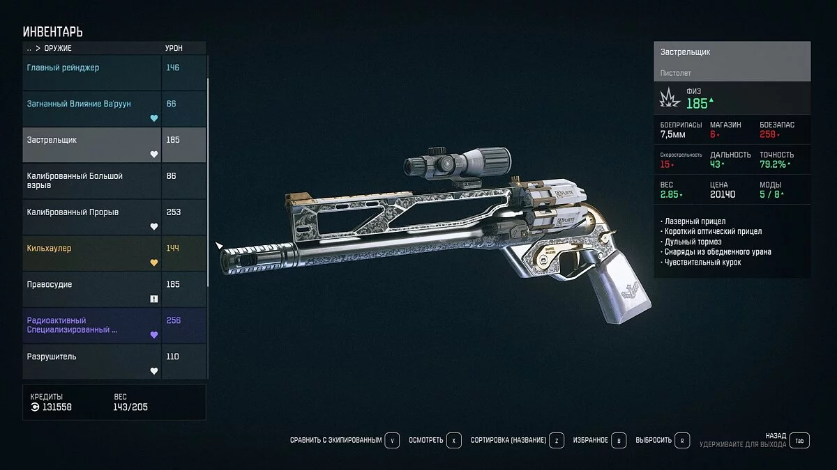 Является одним из самых мощных легендарных пистолетов в Starfield. Помимо уже имеющихся преимуществ, он также оснащен лазерным прицелом, тактической рукояткой, разрывными патронами и повышенной мощностью. Это делает ствол намного более точным, а также даёт ему бонусы к урону.