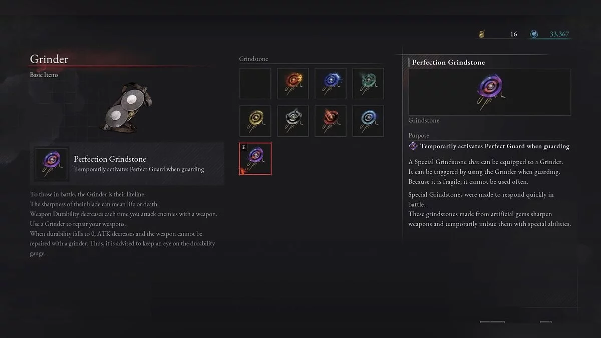 Точильные камни — расходники, которые дадут вашему оружию свойство стихии, но на некоторое время. Сначала у Пи будет стандартный бесконечный точильный камень, который может только восполнять прочность оружия, однако по сюжету вы откроете идеальный точильный камень, и это лучшее, что можно использовать для защиты. Устройство дает любому вашему блоку свойство идеального со всеми вытекающими.