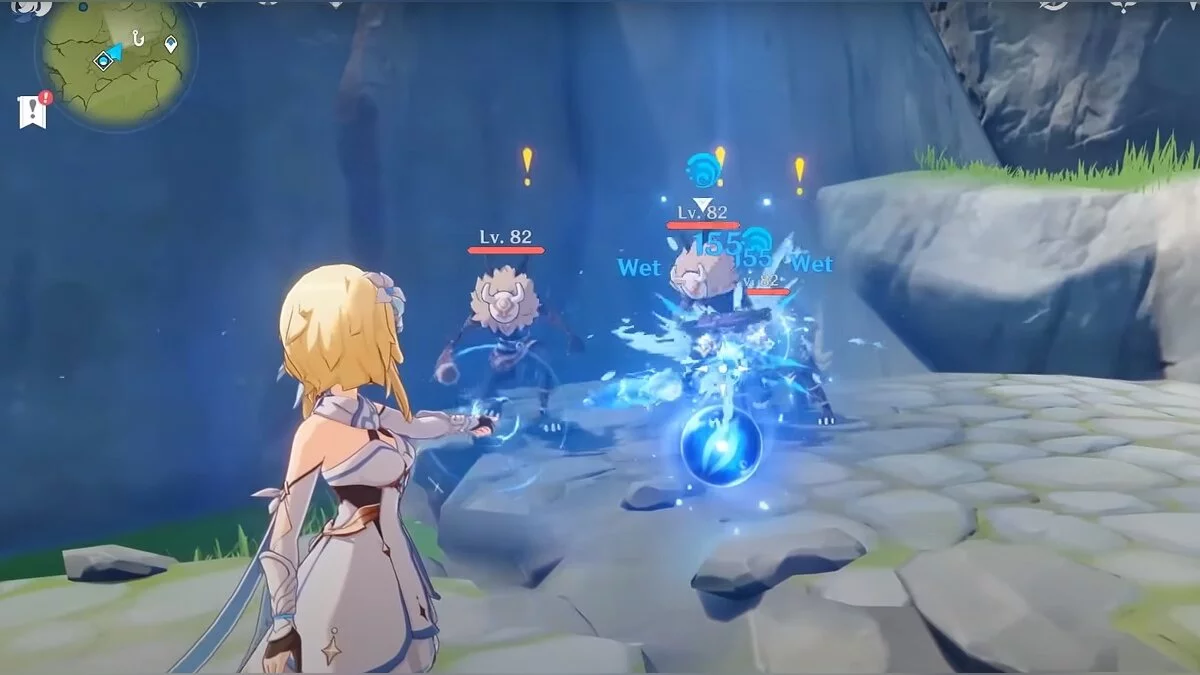 Обычные атаки Гидро-путешественника малоэффективны. Использование элементального навык не очень удобно и делает вас уязвимым при долгом нажатии. Поэтому применять его стоит в крайнем случае. Ваша основная задача — вызывать пузырь при помощи взрыва стихий. После этого можно переключаться на другого героя. Таким образом вы будете наносить врагам Гидро-урон и создавать реакции со стихией воды.