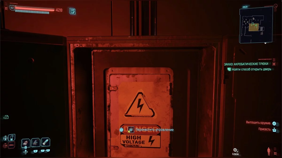 Дверь, отделяющая вас от подземной парковки, заперта. Чтобы ее открыть, нужно 20 очков силы. Если нужной характеристики нет, вернитесь по коридору в первую комнату, чтобы перенастроить трансформатор.