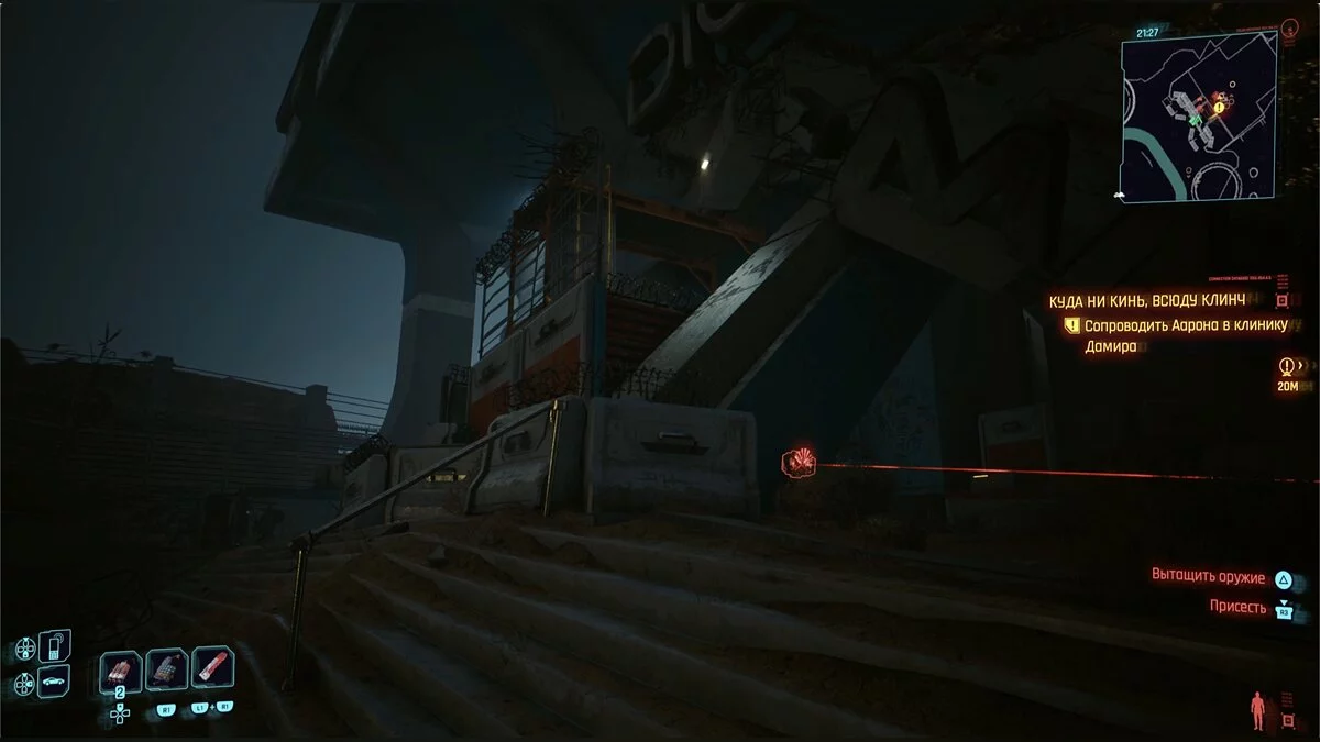 Тренер, который руководил вашими боями в Найт-Сити, попросит встретиться с Аароном — бойцом из Пёсьего города. Здоровяку нужно попасть к риперу на базе «мусорщиков». Направляйтесь в указанную точку.