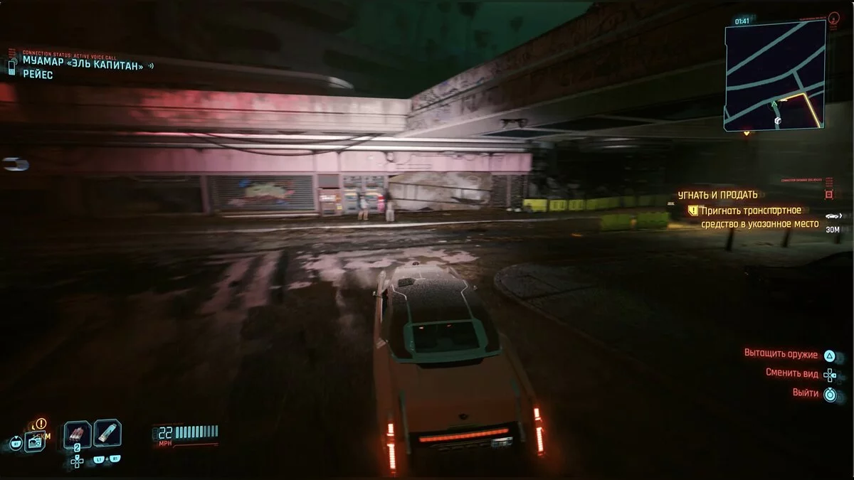 В ходе исследования Пёсьего города вы найдете на карте значок руля — это автомобили для угона. Задания регулярные и выполнять их можно постоянно, но для этого сделайте самое первое. Садитесь в нужную тачку и выезжайте за пределы Пёсьего города. По пути разберитесь с преследователями. Некоторые подобные задания будут с дополнительными условиями, например, приехать без аварий или за отведенное время. Также машины для угона появятся и в других районах Найт-Сити.