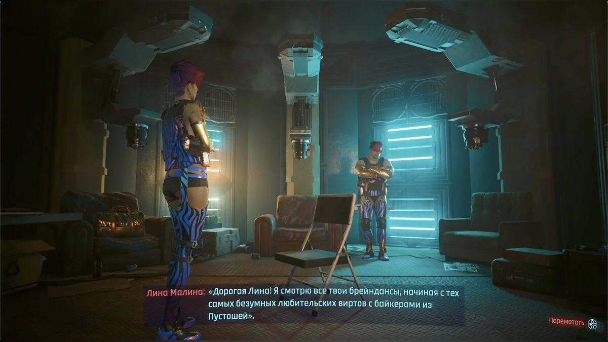 Отправляйтесь в магазин. На первом этаже ничего не будет, идите в подвал. Там вы увидите двух мужчин. Один стоит в закрытой комнате в женской одежде. Поговорите со вторым. Выяснится, что они оба хозяева магазина, однако Тул — тот который в женских вещах — пересмотрел брейндансы с Линой Малиной и слуайно повредил себе мозг. Мужчину надо спасать, однако второй хозяин просит пригласить сюда настоящую Лину, чтобы записать эксклюзивное видео и отрекламировать магазин.
