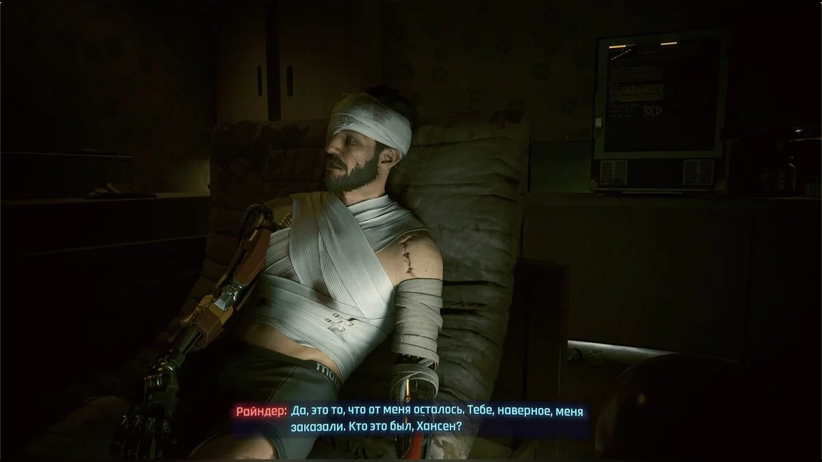 Взломайте чип и отправляйтесь к старому мотелю. Там база бандитов. Можете разобраться с ними, как захотите. Сам убийца будет на последнем этаже в конце коридора. Его охраняет мини босс — Яков. Разберитесь с ним. Мужчина, которого ищет Ви, в тяжелом состоянии и лишился всех боевых имплантов. Выяснится, что он не помнит, как убил детей из трущоб. У него начальная стадия киберпсихоза.