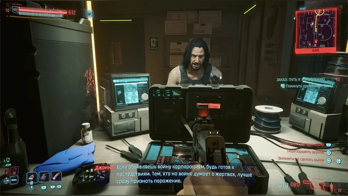 Далее будет турель — желательно перевести ее в дружественный режим. Не забудьте про еще целый ряд камер наблюдения. Можете всех убить или поступить более тонко — неважно. Рипер ждет на самом верху.