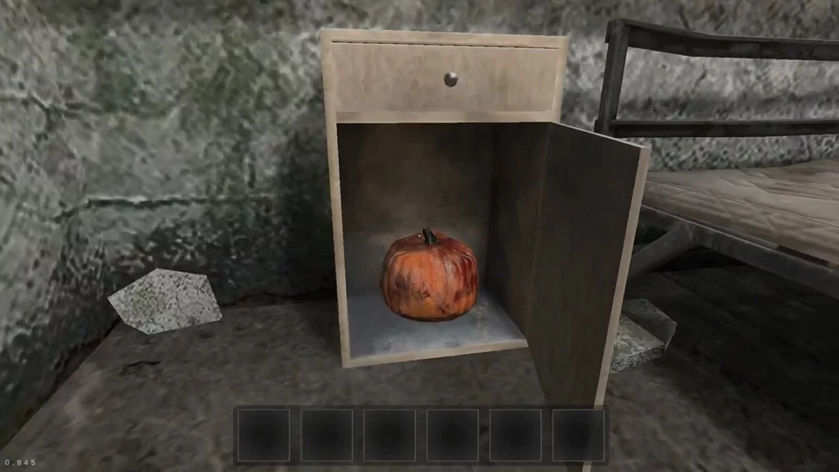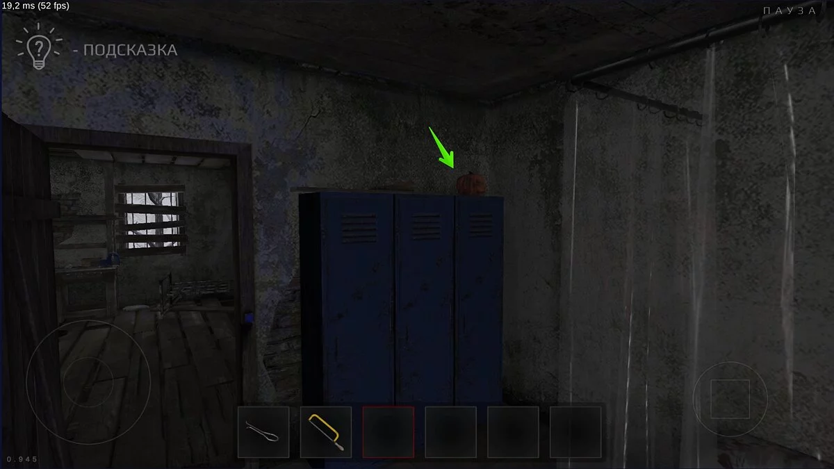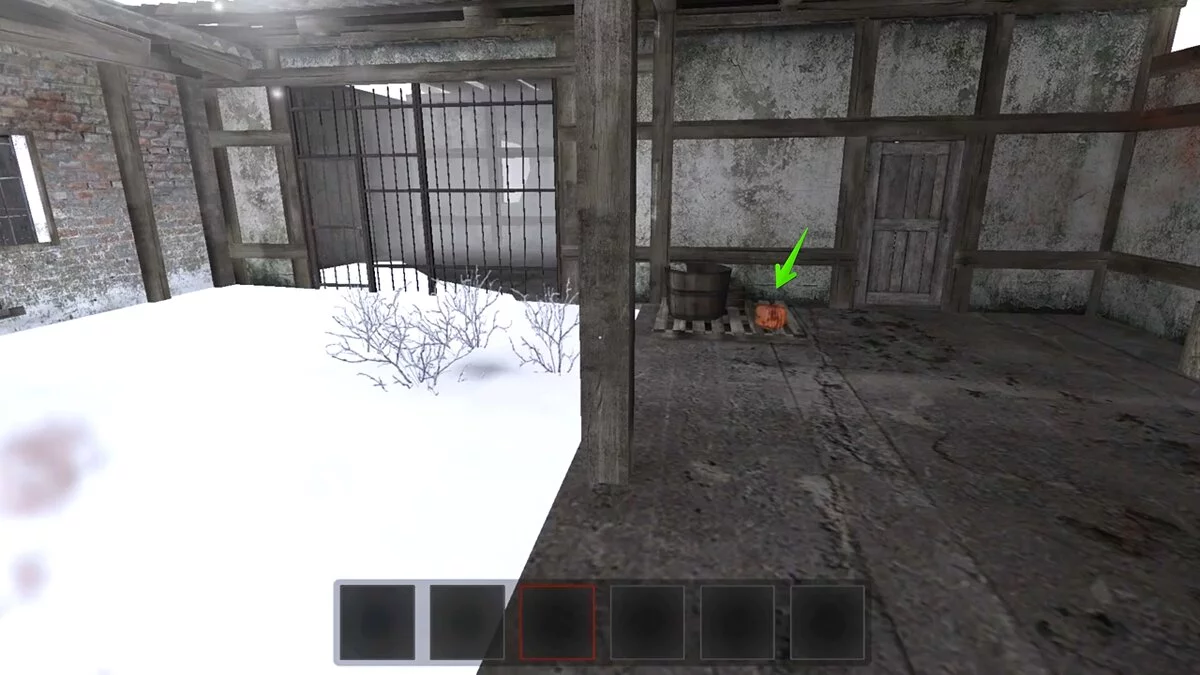 Эту тыкву достать непросто — она лежит прямо в будке у овчарки. Подойдите к двери, присядьте и попробуйте схватить предмет через щель. Только не подходите слишком близко, так как собака накинется на вас, что затриггерит маньяка.