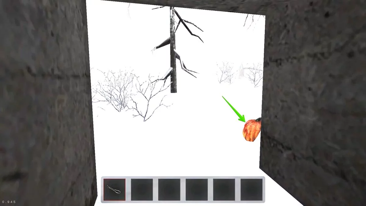 Первая же тыква находится в конце туннеля. Нужно добраться сюда, но не выходить на улицу, а просто подобрать предмет.