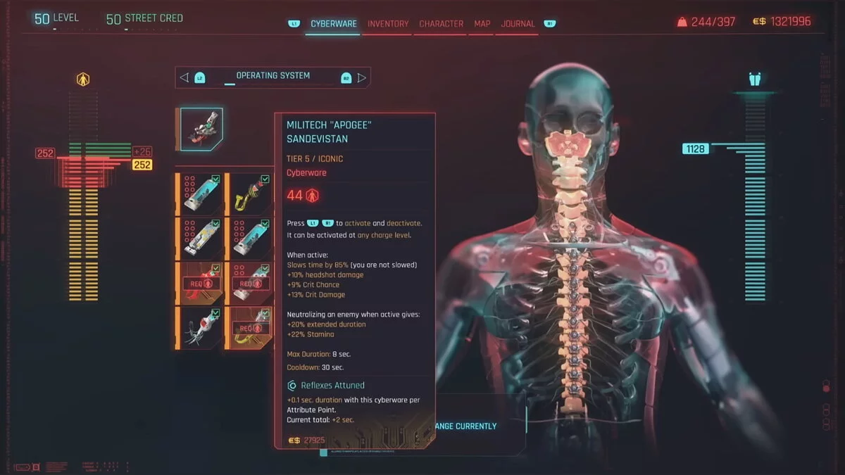 Самый лучший имплант, который способен замедлять время, называется «Милитех Сандевистан “Апогей”». Он обладает следующими функциями: