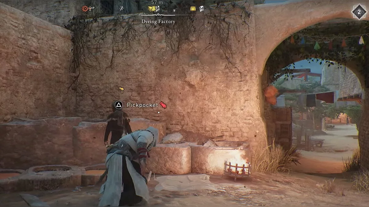 Украдите амулет у женщины, которая стоит недалеко от чанов с красками.