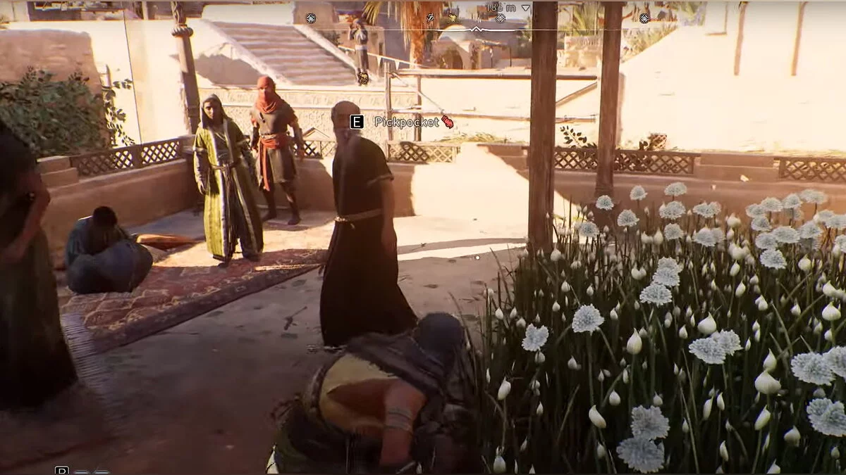 Женщина, у которой есть нужный вам артефакт, будет нюхать цветы. Подойдите к ней сзади и совершите карманную кражу.
