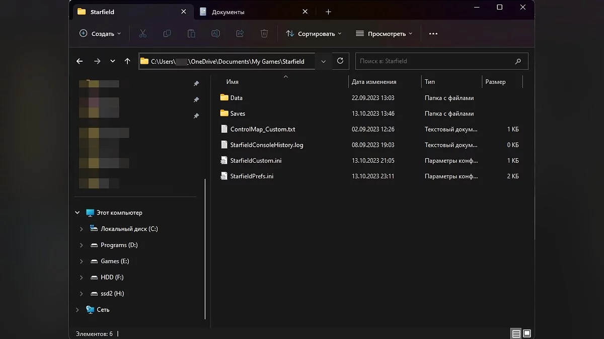 - «C:/Users/ИМЯ_ПОЛЬЗОВАТЕЛЯ/OneDrive/Documents/My Games/Starfield/Saves»