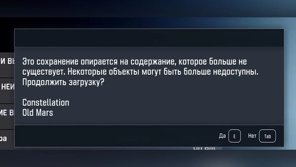 - После конвертации сохранений вы увидите ваши сейвы в версии Starfield для Xbox Game Pass. Выбрав сейв, вы также получите баннер «Это сохранение опирается на содержание, которое больше не существует. Некоторые объекты могут быть больше недоступны. Продолжить загрузку?». Нажмите «Да» и продолжите играть.