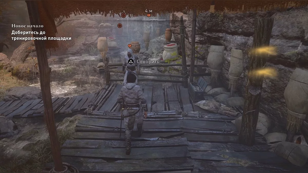 Прежде чем отправиться на тренировку, поговорите с ассасином на пути. Над ним горит оранжевый восклицательный знак. Вас научат бросать ножи.