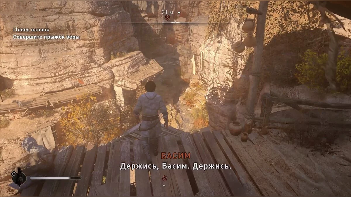 После вступительной кат-сцены выходите из дома и следуйте за Нихаль. Вас обучат основам паркура, повторяйте движения за подругой, чтобы оказаться на рынке.