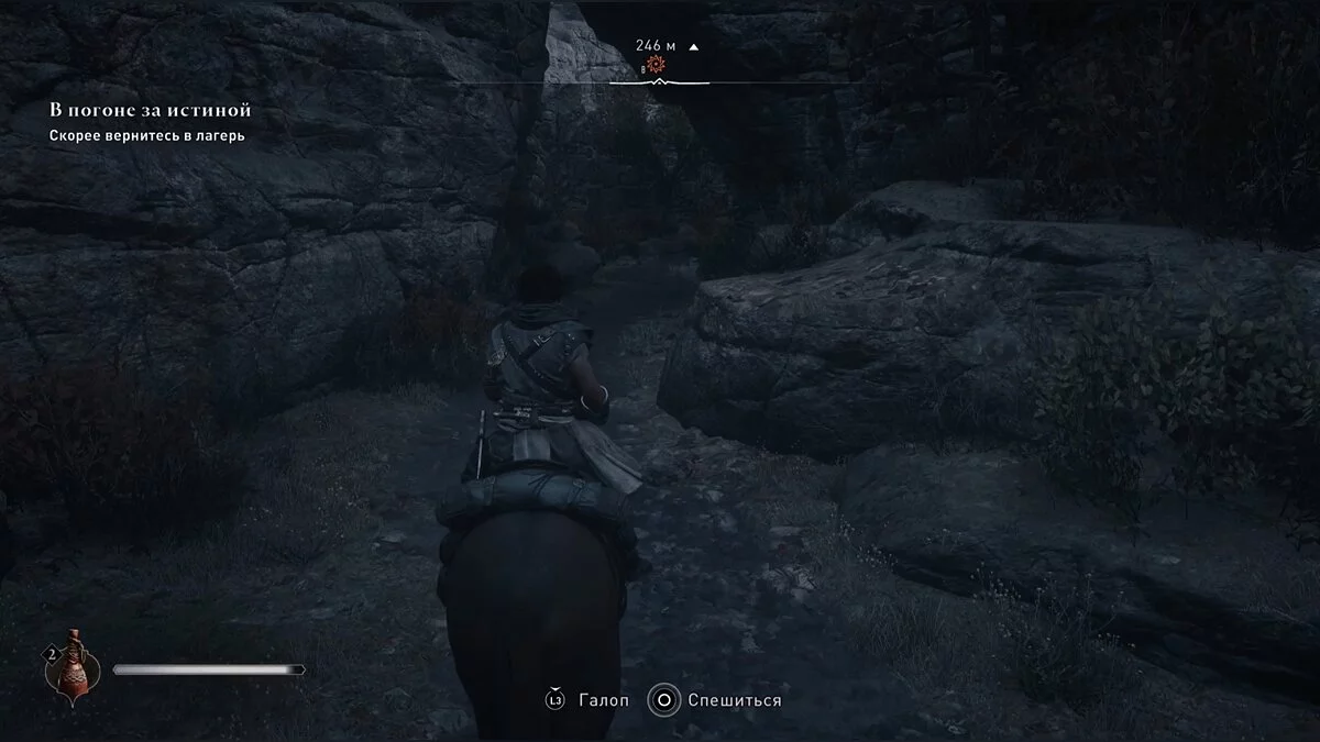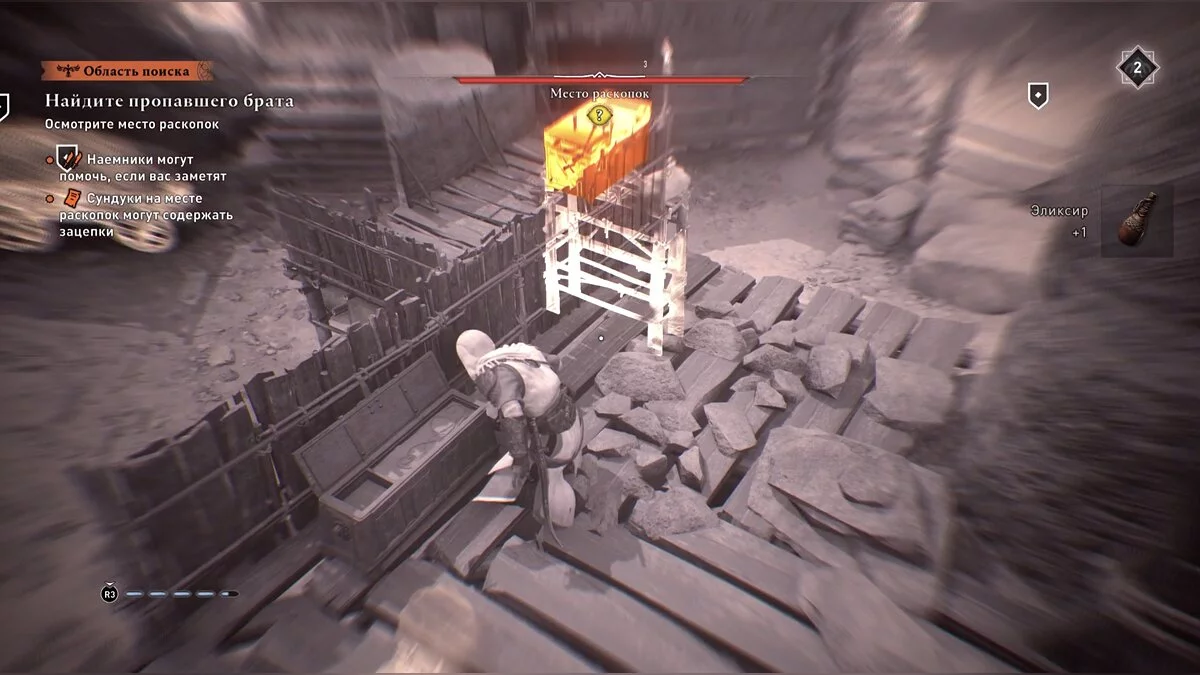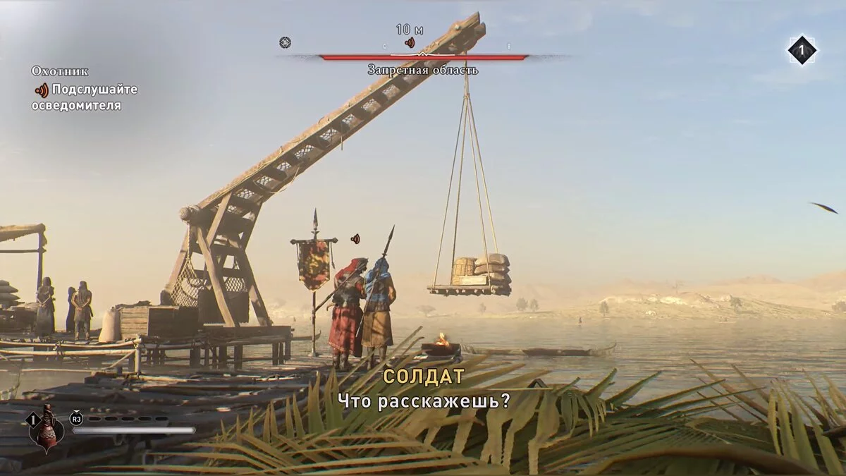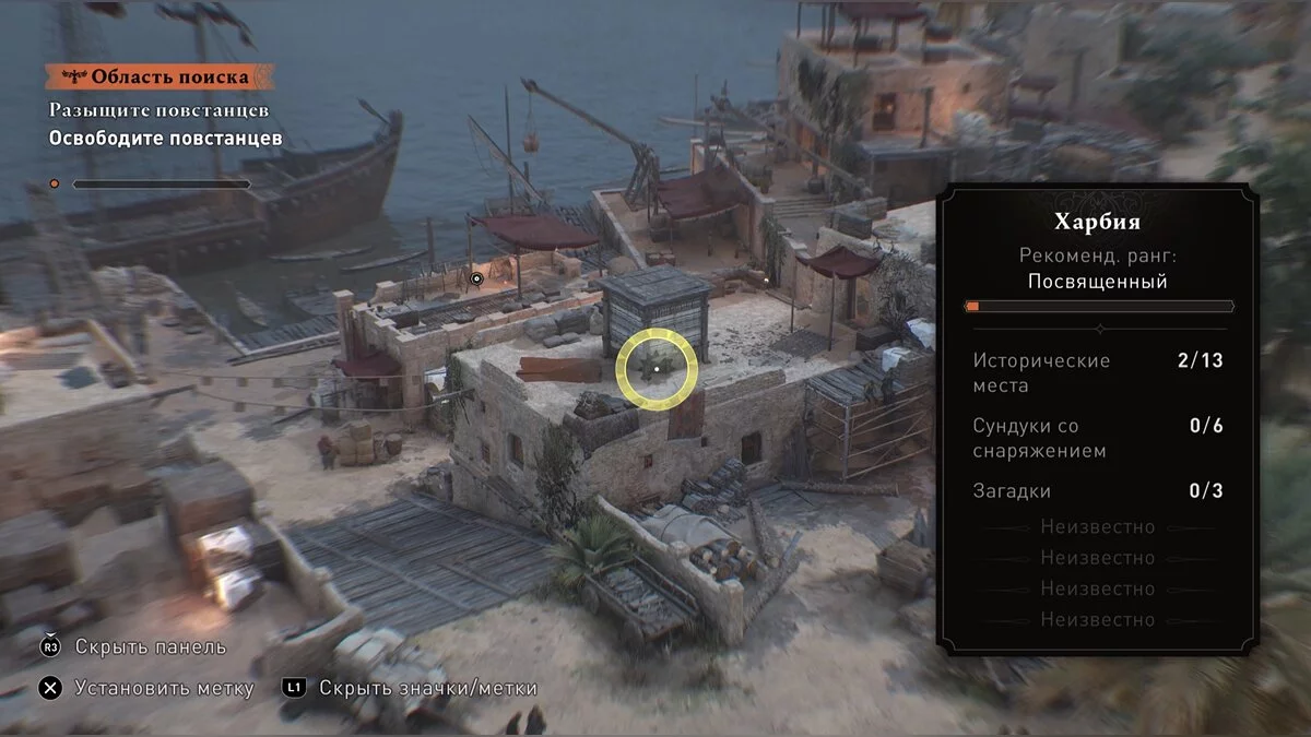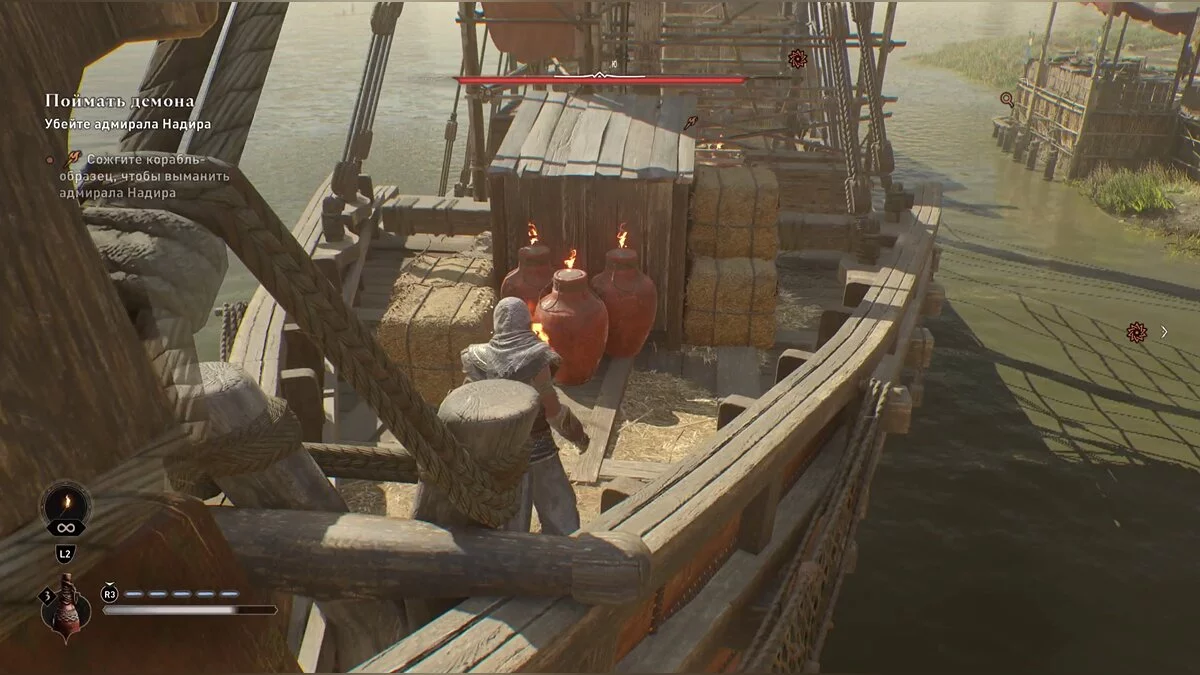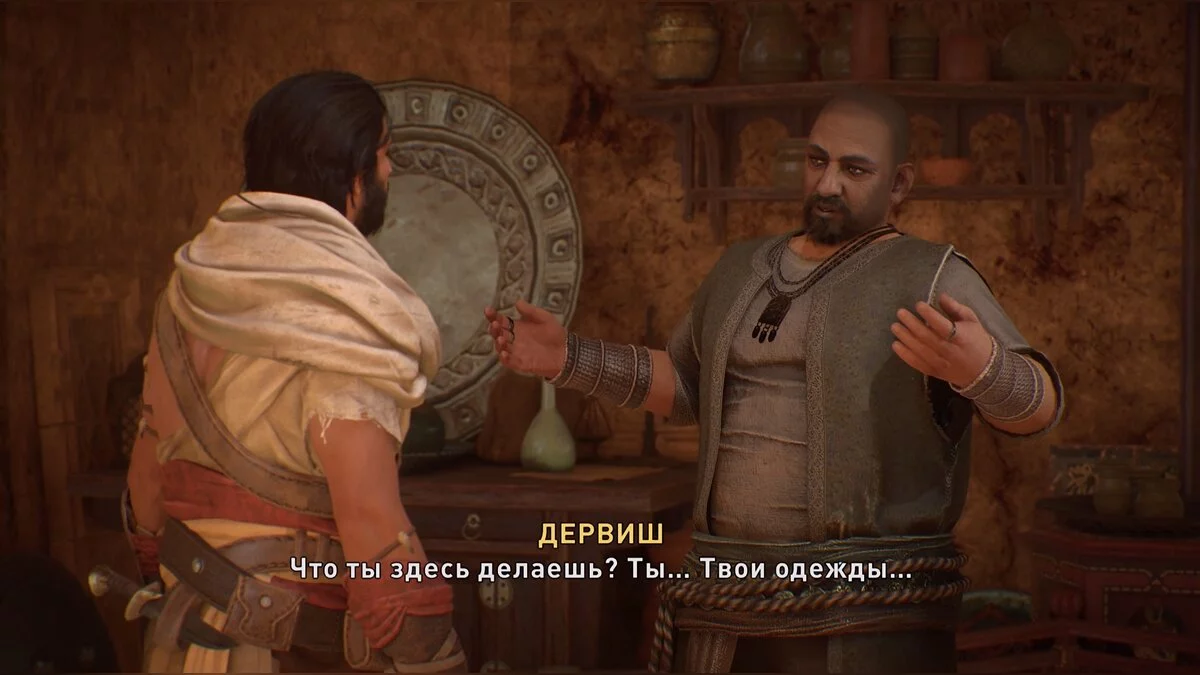 Используя орлиное зрение, найдите мешок с деньгами, оставленный купцом. Далее следуйте за Нихаль, пока она не найдет еще одну цель для кражи. Освойте эту механику и двигайтесь к Дервишу. Снова посмотрите кат-сцену и двигайтесь на склад за учетной книгой.