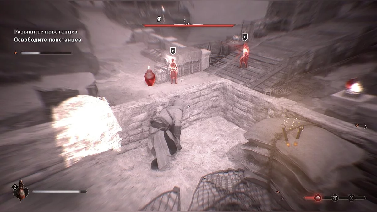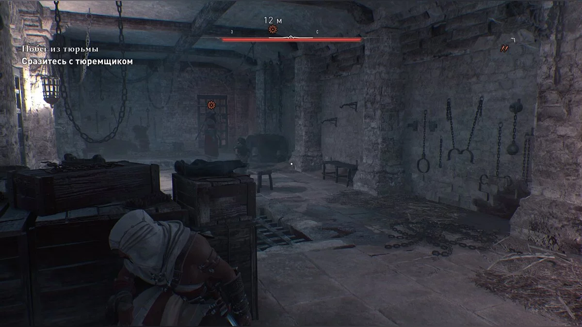 После короткой кат-сцены двигайтесь вперед, а затем спрыгните в стог сена. Ваша главная цель — освободить Райхана — главу братства, однако параллельно можно спасти еще несколько ассасинов.