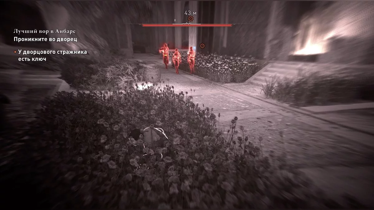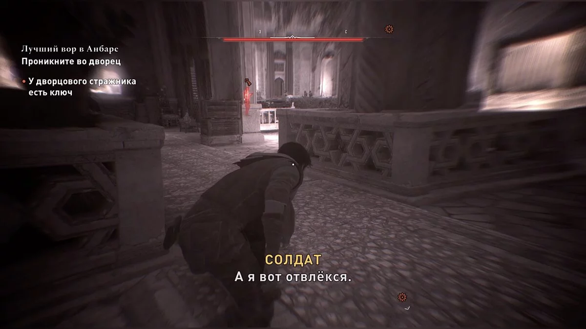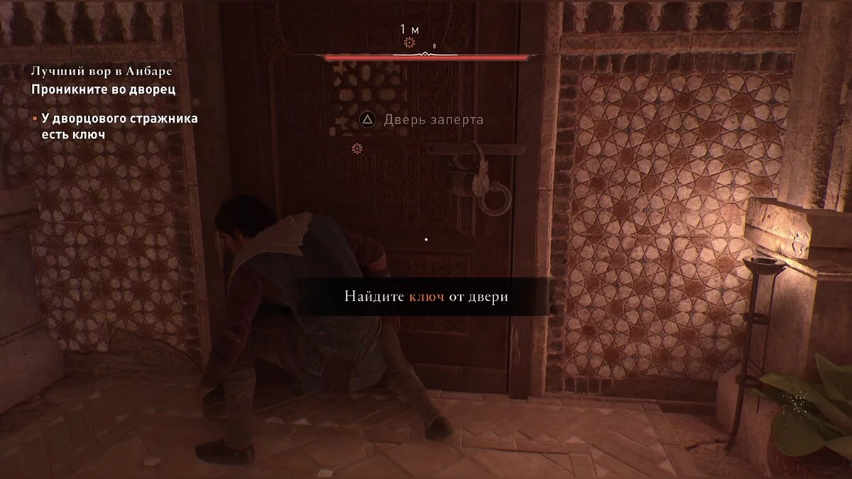Кабинет наместника на третьем этаже, но для него нужен ключ, который у охранника на первом. Стражник стоит в окружении других, поэтому используйте гаджеты или телепорт, чтобы ликвидировать всех их быстро и тихо.