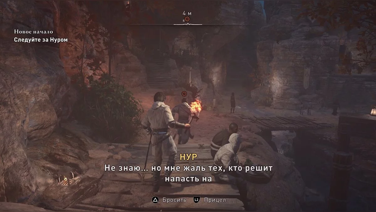 Следуйте за Нуром в дозор. После диалога доберитесь до смотровой точки и посмотрите кат-сцену. Нужно тихо ликвидировать несколько лазутчиков. После победы начнется продолжительная кат-сцена.