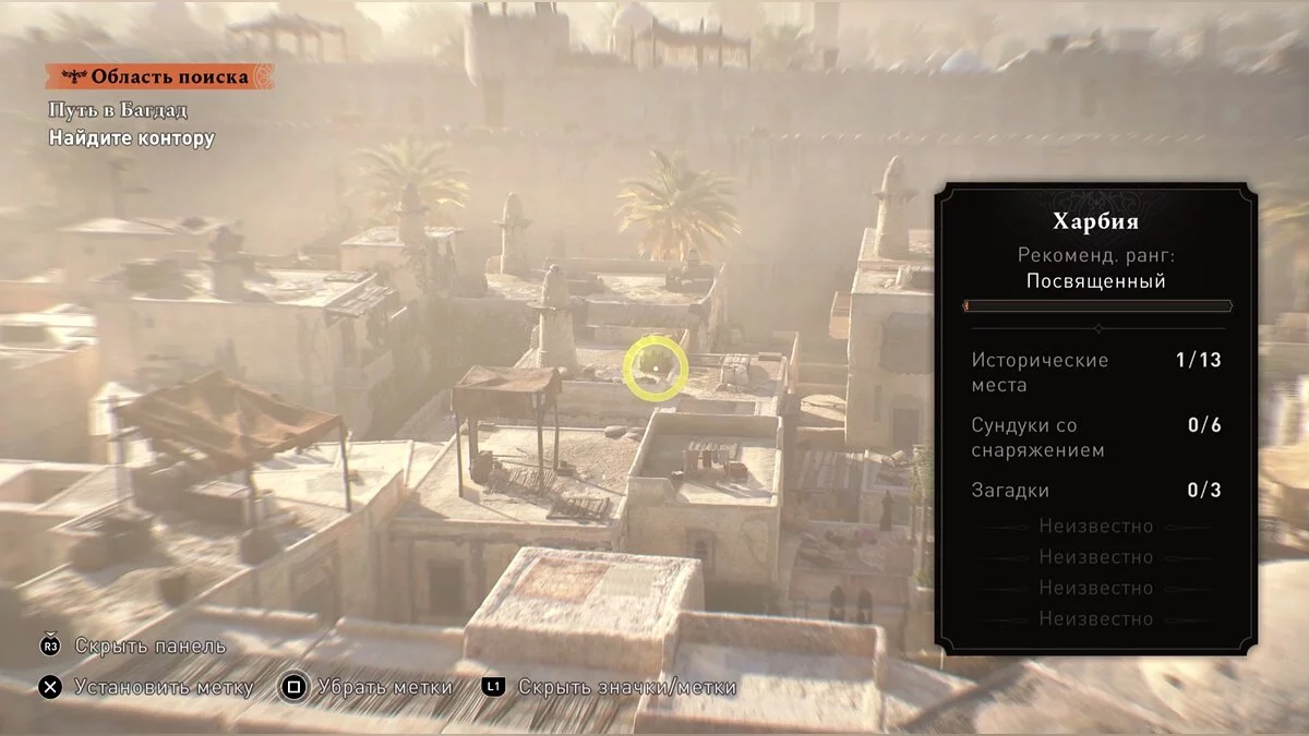Кроме самой первой конторы в Багдаде открылось еще несколько. Посетить их вы можете в любой последовательности, там начнутся ваши расследования по каждому из четырех членов Ордена. Мы выбрали район Карх. Как и раньше используйте орла для точного обнаружения.