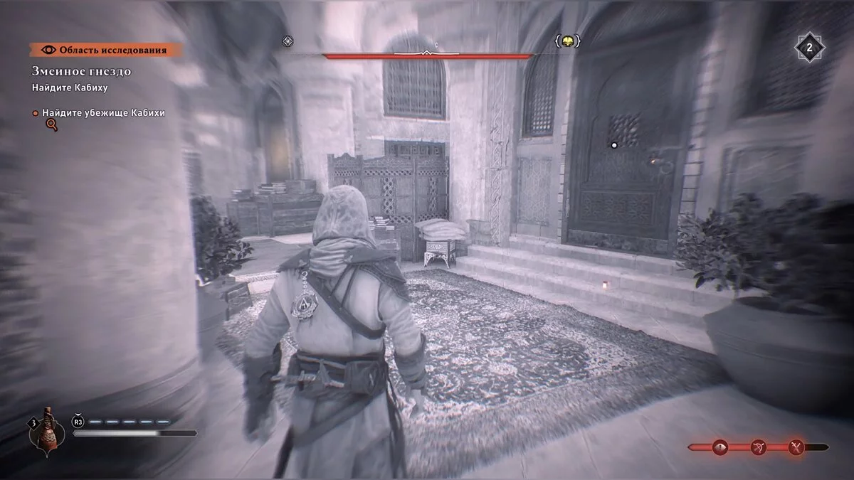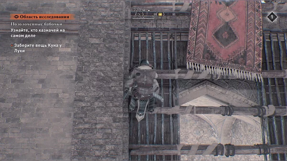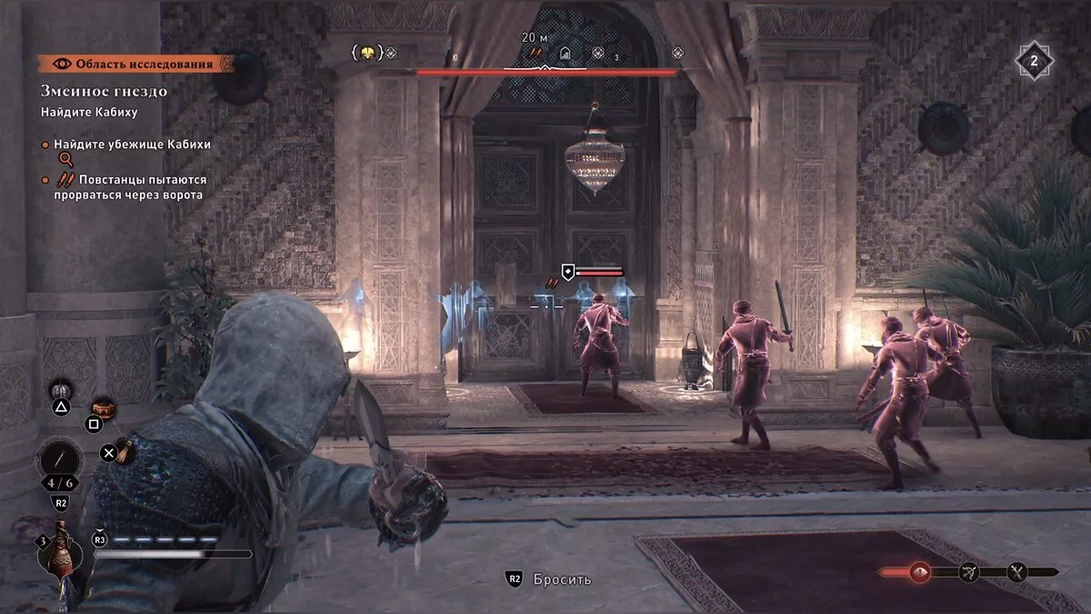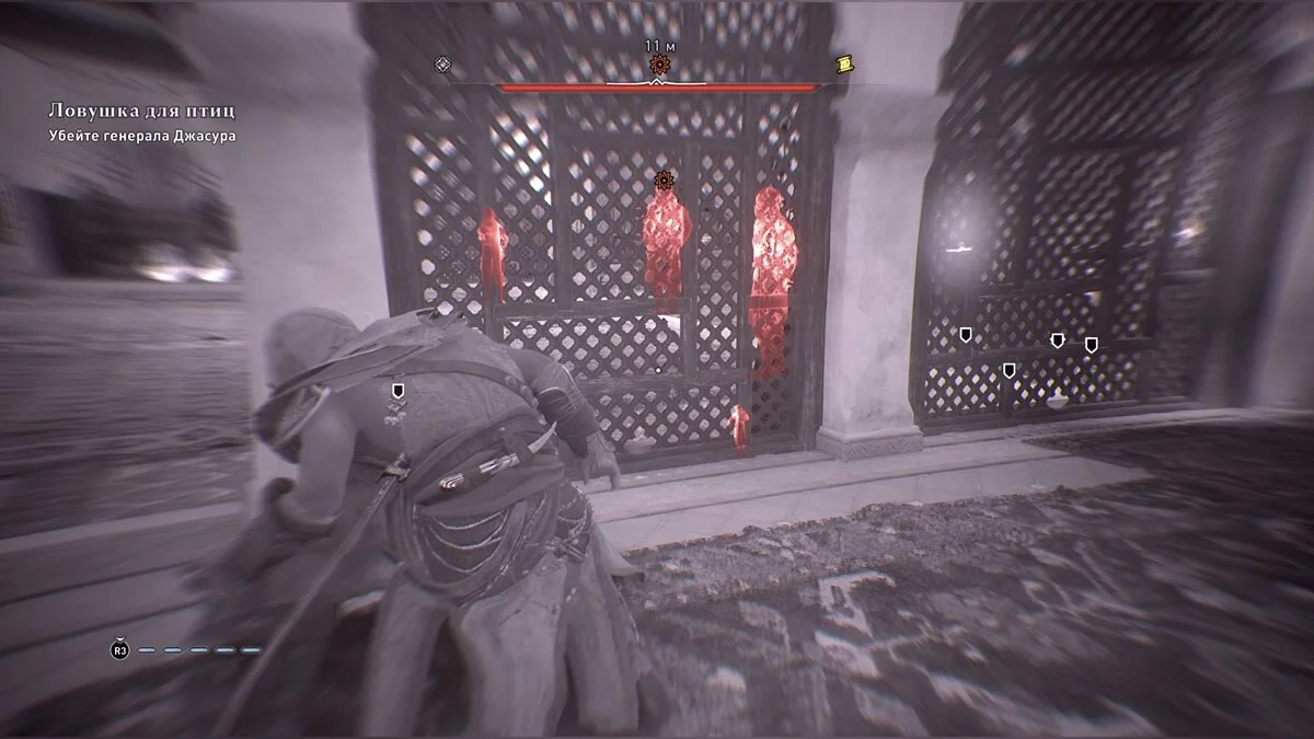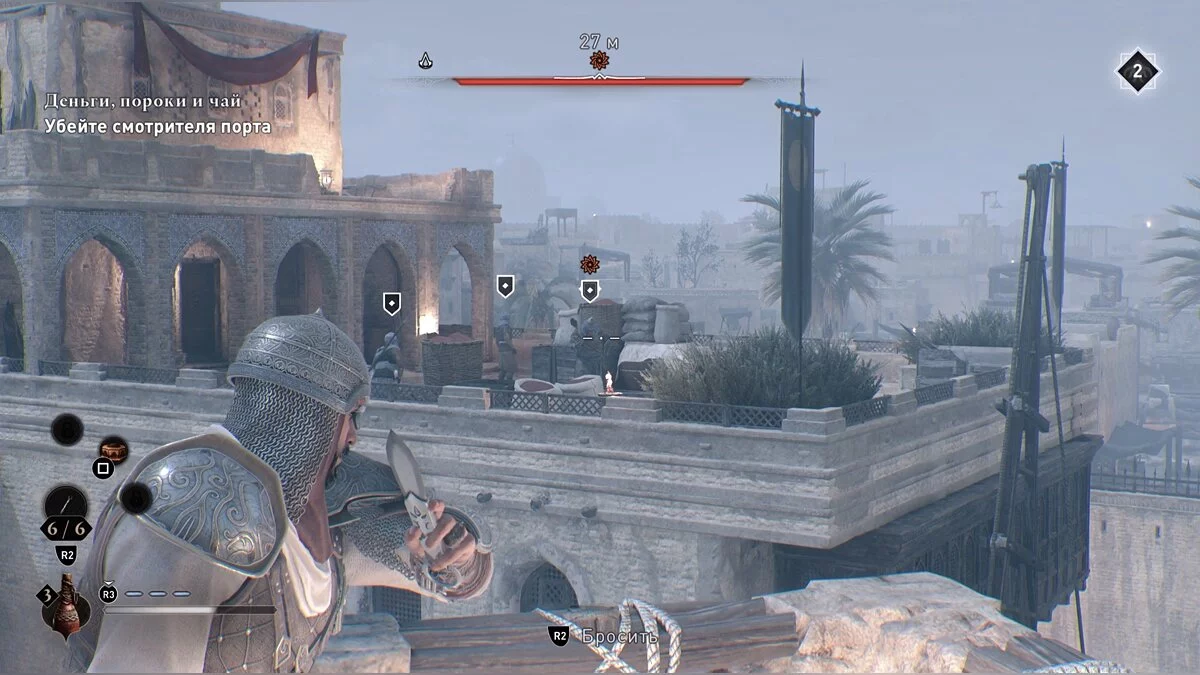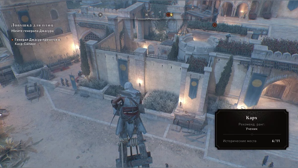 Зацепка с торговцами приводит Басима в особняк продажного сборщика податей. Тут орел вам не поможет, так как на крышах есть лучник, который целится в птицу и отгоняет ее от местности. Придется либо сначала убить лучника, либо пользоваться орлиным зрением с земли.