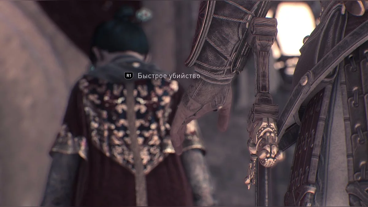 Следуйте за охраной и подождите, пока Нин будет готова вас принять. Поговорите с ней и посмотрите кат-сцену. Совершите быстрое убийство, а затем сразу бегите в левую сторону, чтобы подняться выше и ускользнуть от стражи.