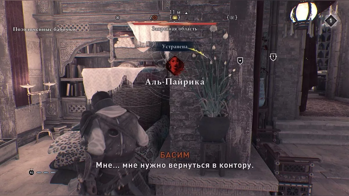Осталась последняя цель, однако ни Басим ни другие ассасины не знают, кто скрывается под маской. У вас есть три подозреваемых, для каждого из которых собственная миссия. Начнем с Кабихи. Её мы встречали на базаре перед убийством казначея.