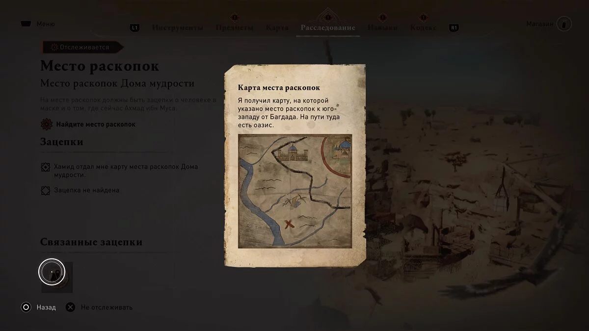 Вы так и не нашли Ахмада, но вам дали карту, на которой отмечена точка раскопок. Место чуть южнее Багдада.
