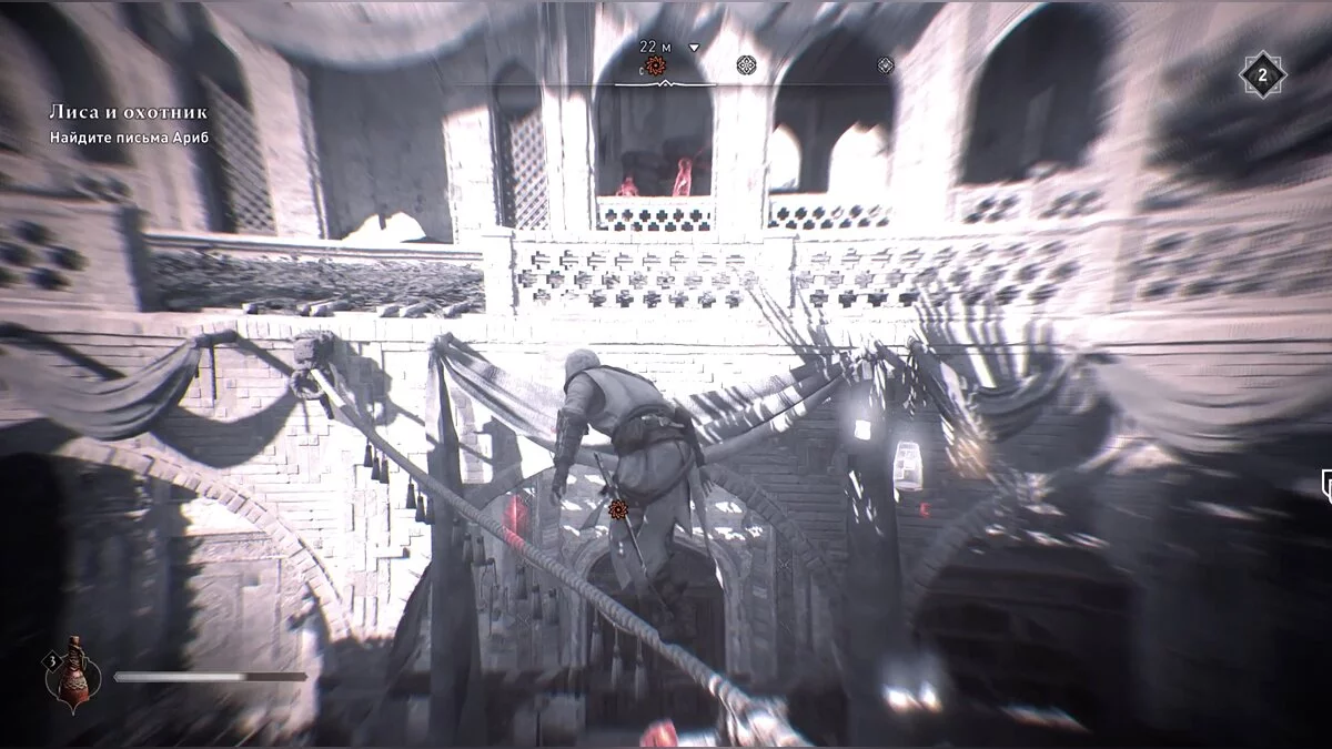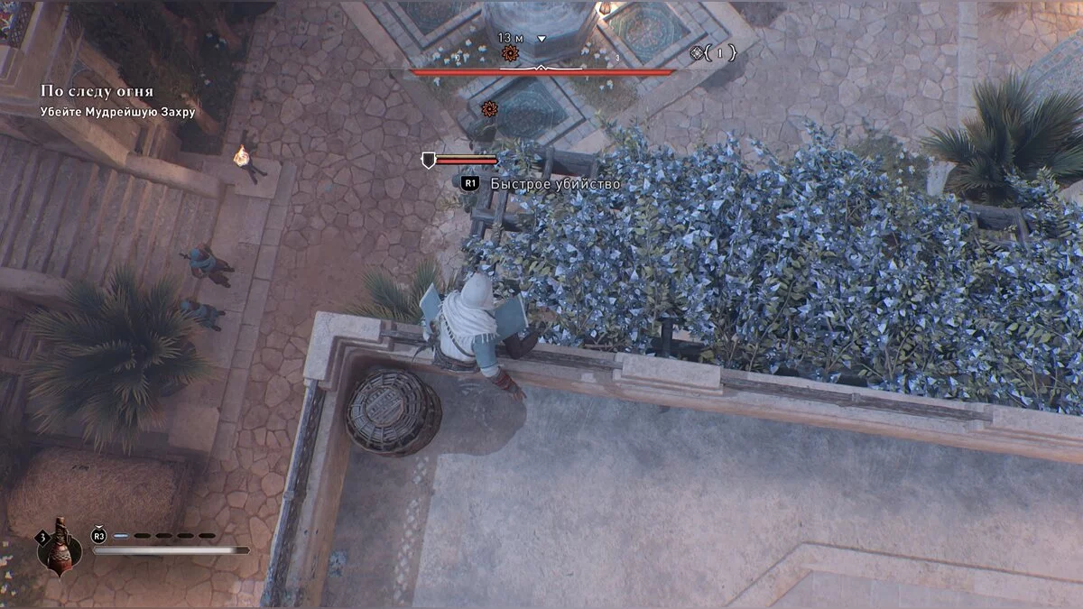 Прибыв на место, вы разделитесь с Рошан и Фуладхом. У вас есть время погулять по Багдаду, прежде чем отправиться в контору. Мы не будем тратить время, поэтому сразу двигаемся к цели. Оказавшись поблизости от точки, переключитесь на орла и включите вид от его первого лица. Вы увидите желтый круг. Чем он меньше, тем ближе от вас нужное место. Используйте это, чтобы определить контору. Проще всего попасть в них с крыши, как в первой части.