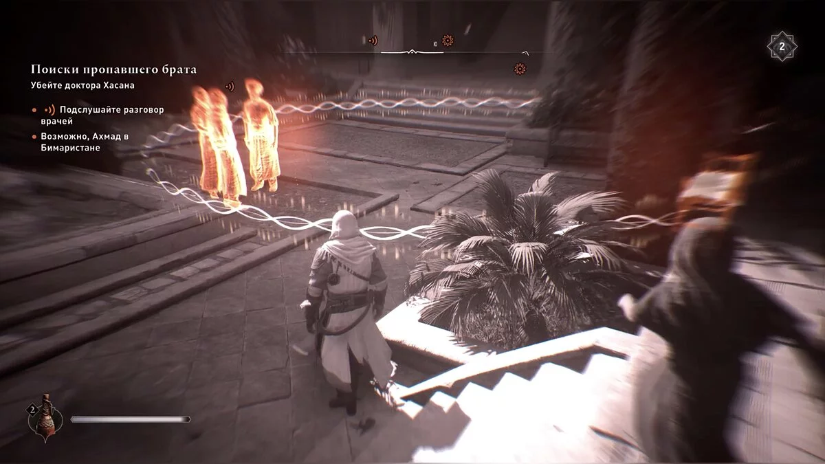 После нее Басим научится использовать новую боевую способность, напоминающую телепорт, — сосредоточение ассасина. Пока доступно лишь два заряда, используйте их, чтобы открыть путь к бегству.
