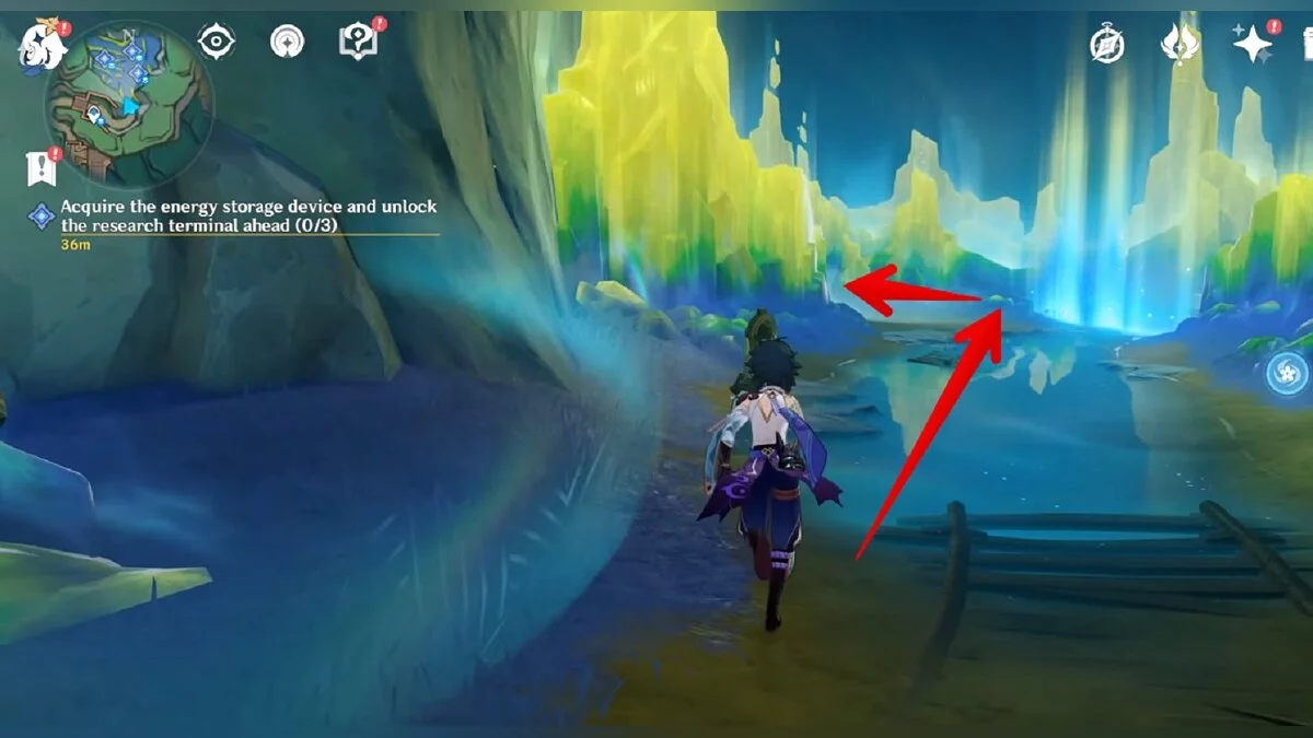 Ныряйте в подводную пещеру, которая находится к юго-востоку от Института кинетической энергии. В эту локацию вы попадёте во время выполнения квеста «Коварный свет из глубин», но при желании посетить её можно и после завершения миссии. До прохождения задания путь к пещере будет закрыт.