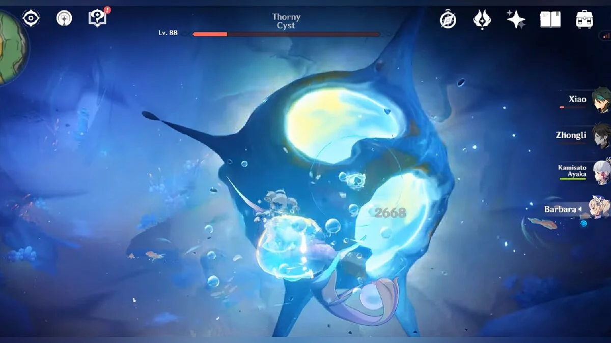 Вам нужно одолеть босса, известного как Шипастый пузырь. После этого вы сможете забрать первый кусок руды.