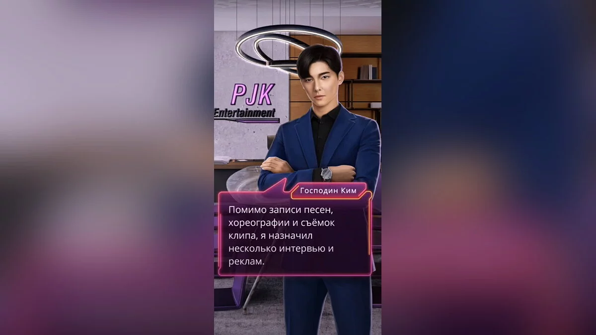 В девять часов состоялась встреча с продюсером. Он предупредил, что вас ждёт интенсивный график со съёмками, участием в ток-шоу и рекламах. Вы можете задать Киму вопрос.