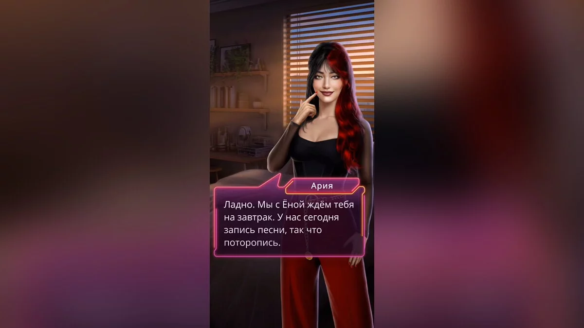 На кухне вас ждёт диетический завтрак. Ёну расстроила новость — получается, девушкам вообще нельзя общаться с парнями. Вы же предложили сосредоточиться на сиюминутных задачах. А ещё вы заметили, что Ена странно себя ведёт. Ария тоже волнуется по этому поводу.