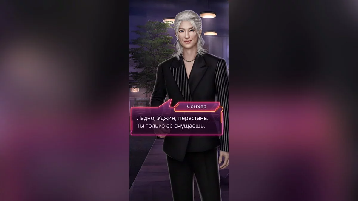 Вы вернулись в кафе и увидели девушек из вашей группы в компании певцов из коллектива X-EVO. Ария вела себя с парнем слишком вольно, особенно если учесть недавний скандал. Уджин назвал вас любопытной особой. А вот Сонхва защитил вашу героиню. Нужно решить, с кем сесть рядом.